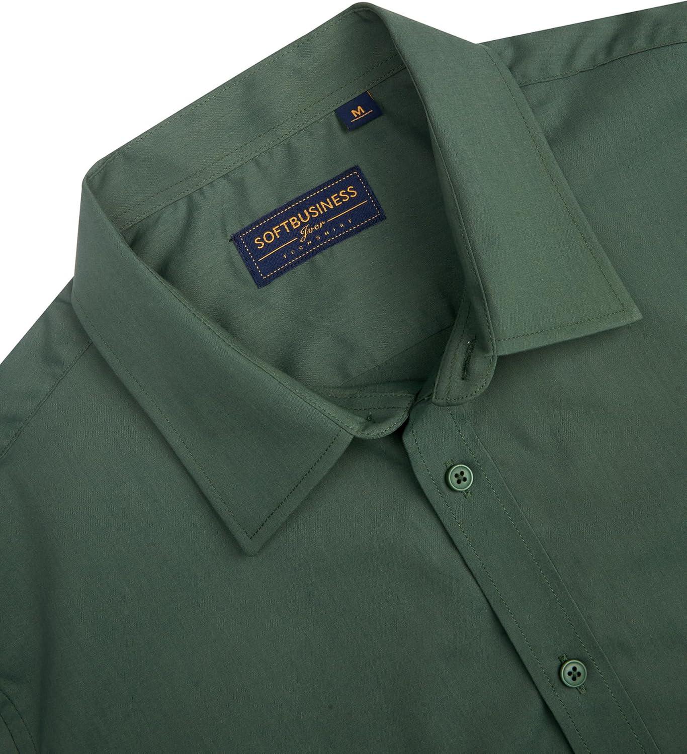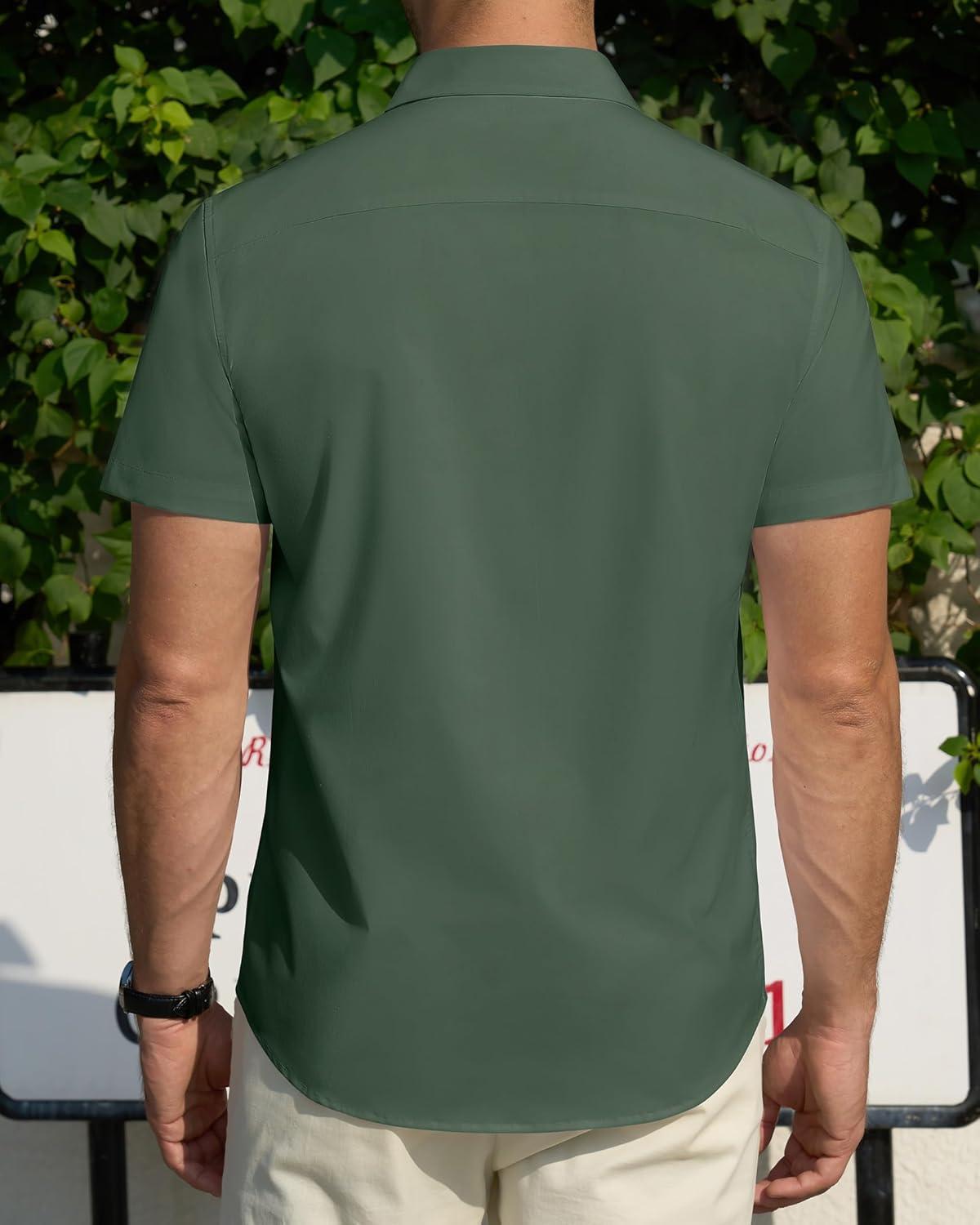 J.VER Men's Short Sleeve Dress Shirts Stretch Stain Shield Casual Button Down Shirts Solid Formal Shirt(Army Green)