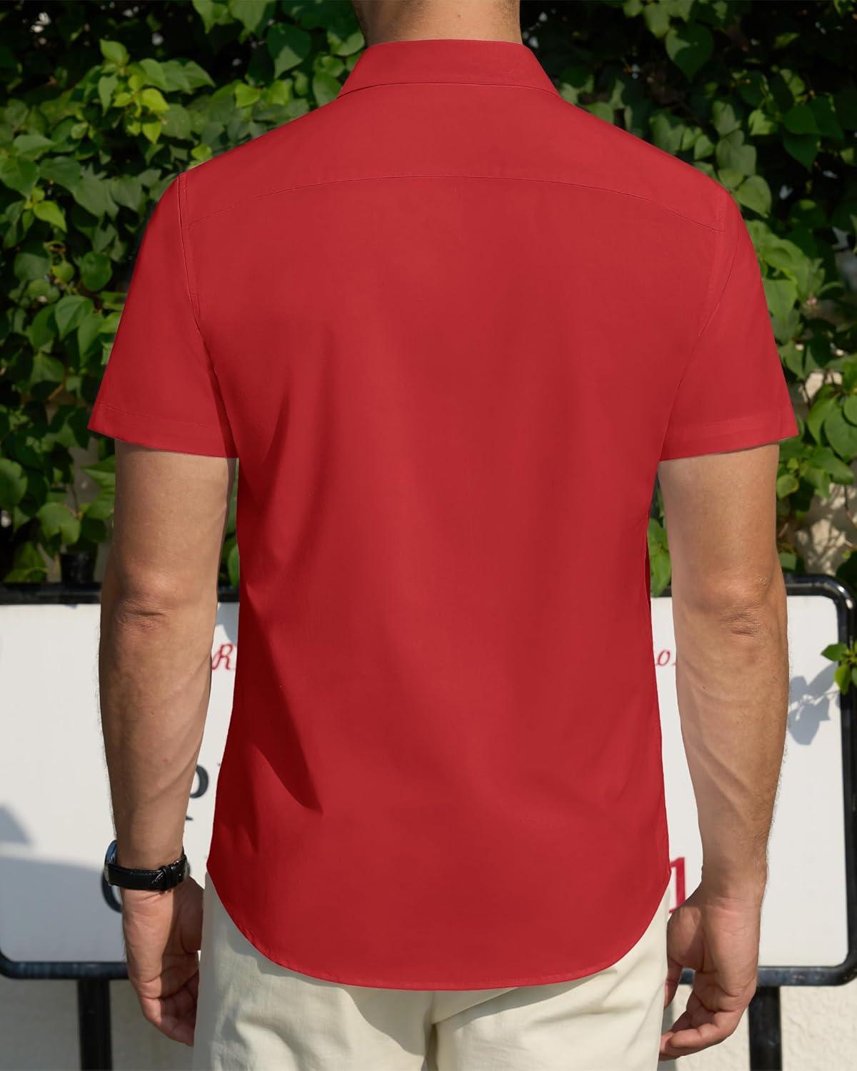 J.VER Men's Short Sleeve Dress Shirts Stretch Stain Shield Casual Button Down Shirts Solid Formal Shirt(Bright Red)