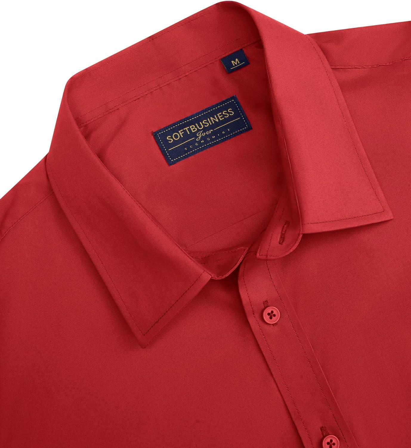 J.VER Men’s Short Sleeve Dress Shirts Stretch Stain Shield Casual Button Down Shirts Solid Formal Shirt(Bright Red)