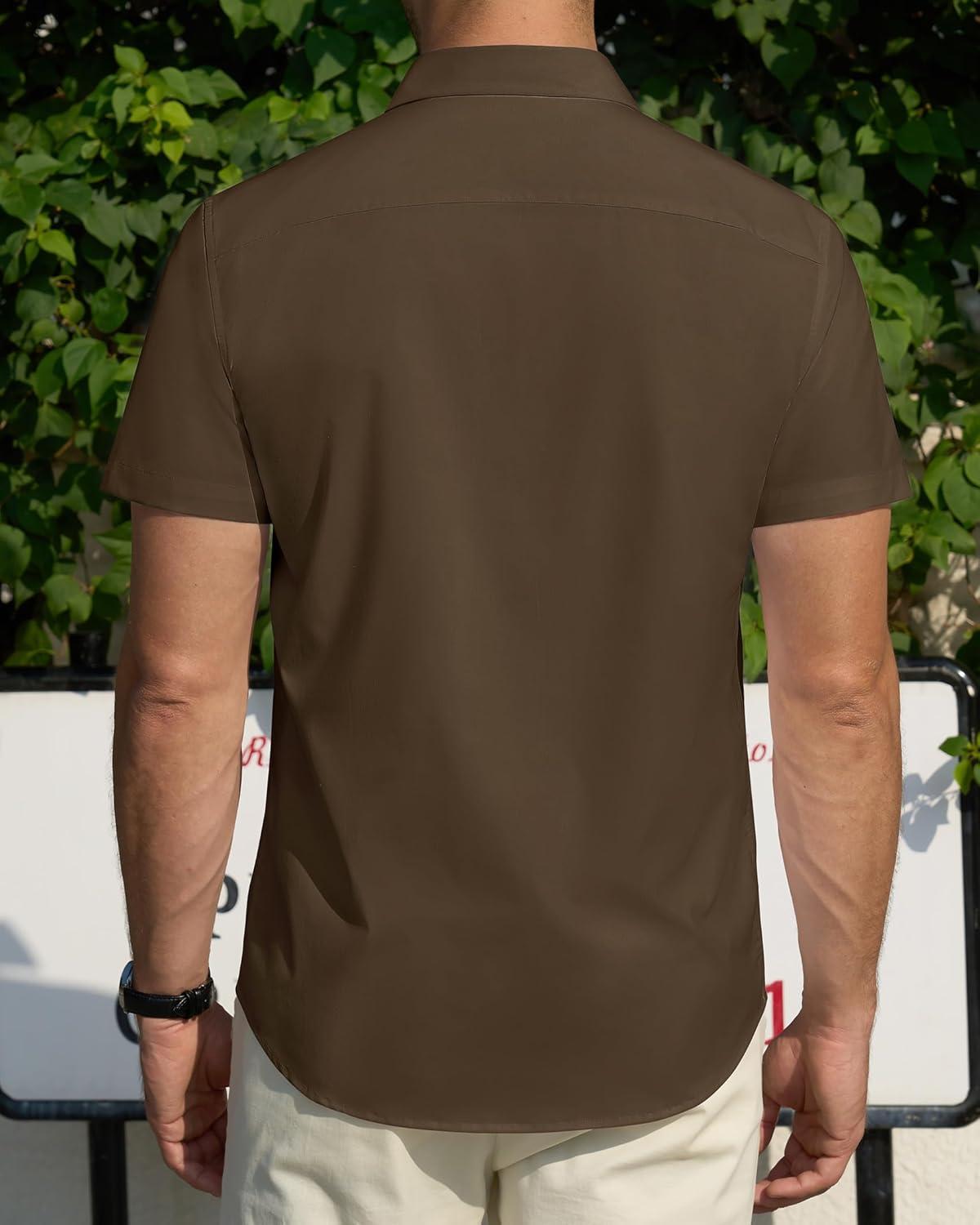 imageJVER Mens Short Sleeve Dress Shirts Stretch Stain Shield Casual Button Down Shirts Solid Formal ShirtBrown