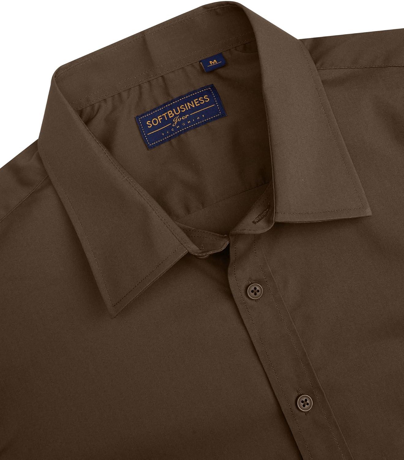 J.VER Men’s Short Sleeve Dress Shirts Stretch Stain Shield Casual Button Down Shirts Solid Formal Shirt(Brown)