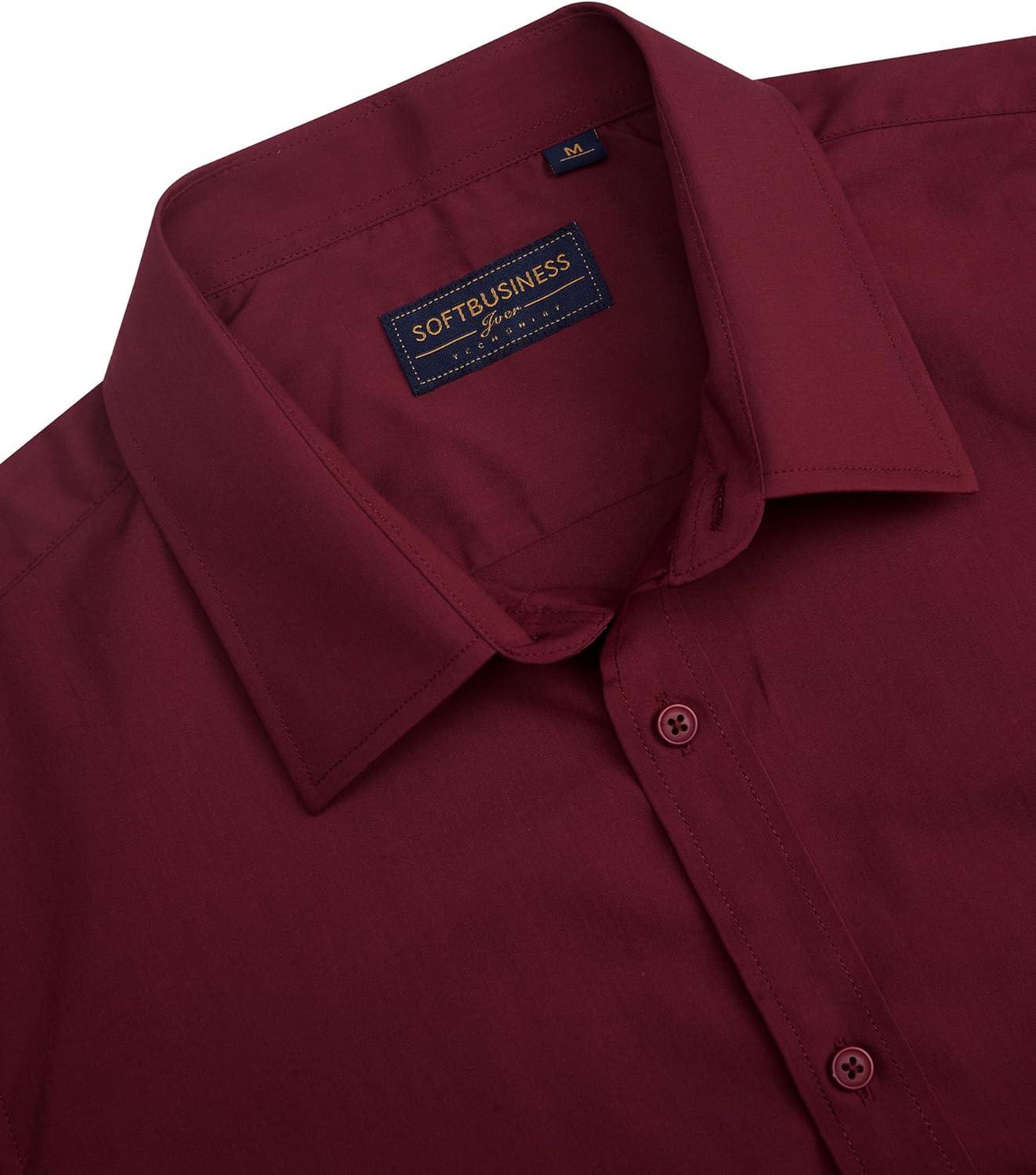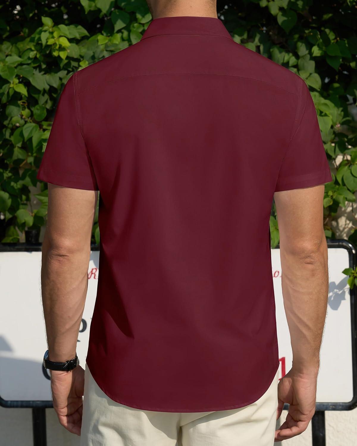J.VER Men's Short Sleeve Dress Shirts Stretch Stain Shield Casual Button Down Shirts Solid Formal Shirt(Burgundy)