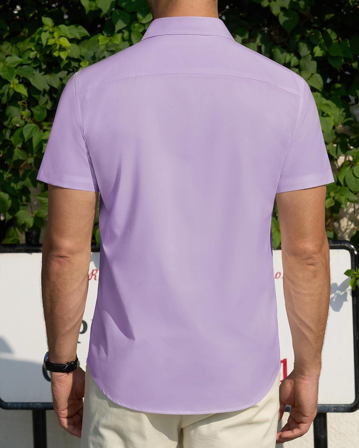 imageJVER Mens Short Sleeve Dress Shirts Stretch Stain Shield Casual Button Down Shirts Solid Formal ShirtLight Purple