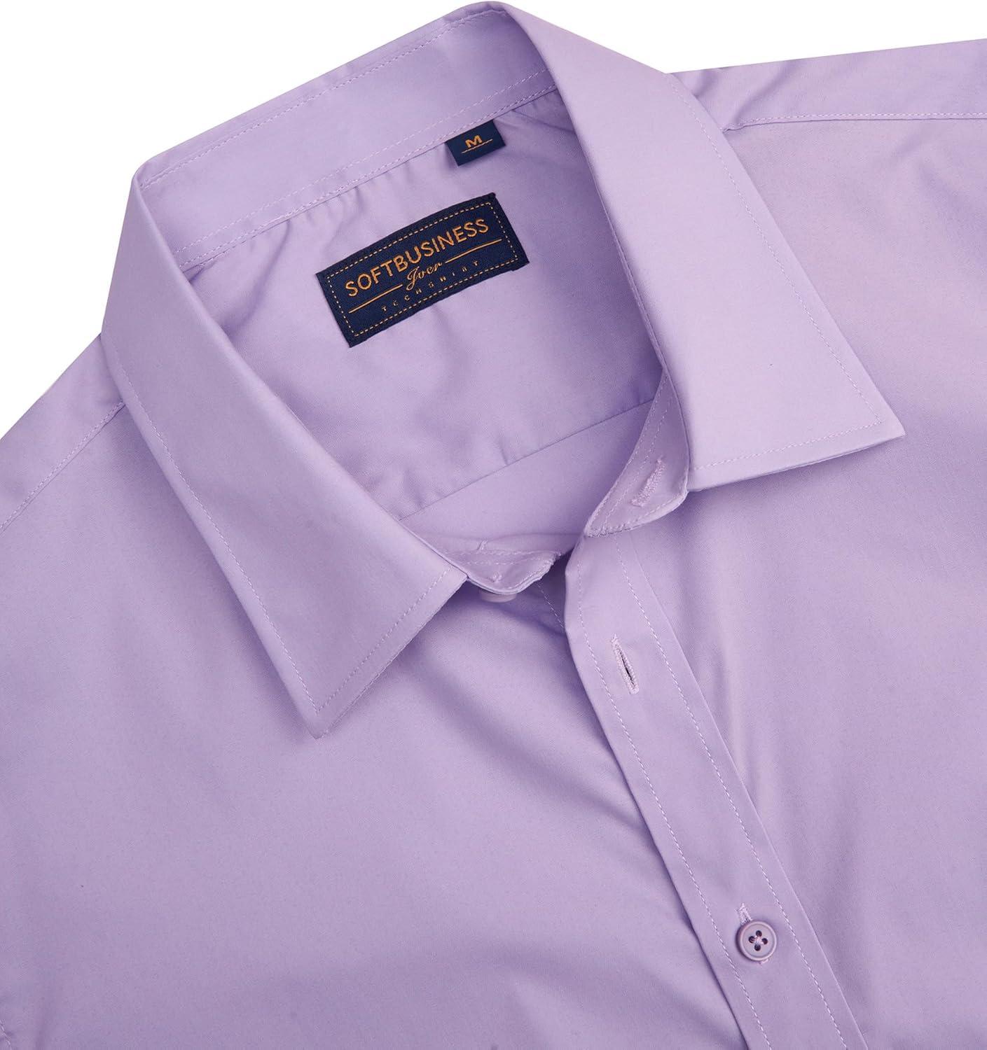J.VER Men's Short Sleeve Dress Shirts Stretch Stain Shield Casual Button Down Shirts Solid Formal Shirt(Light Purple)