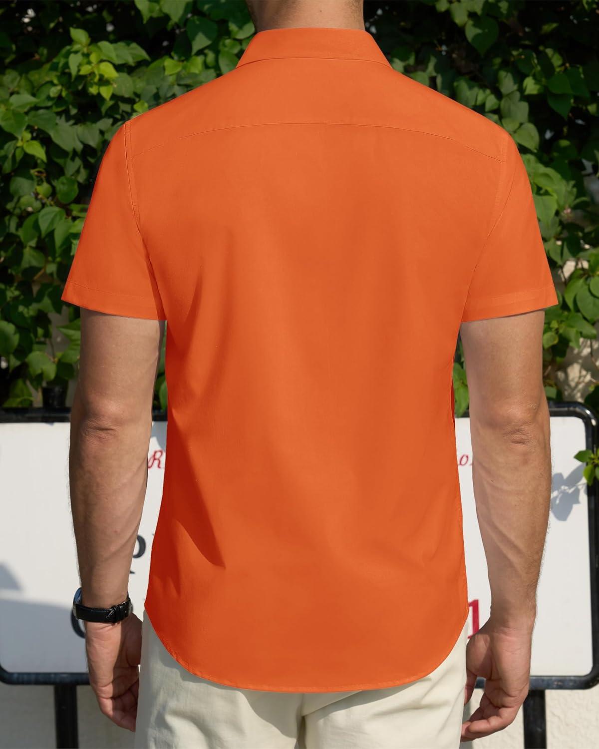 J.VER Men's Short Sleeve Dress Shirts Stretch Stain Shield Casual Button Down Shirts Solid Formal Shirt(Orange)