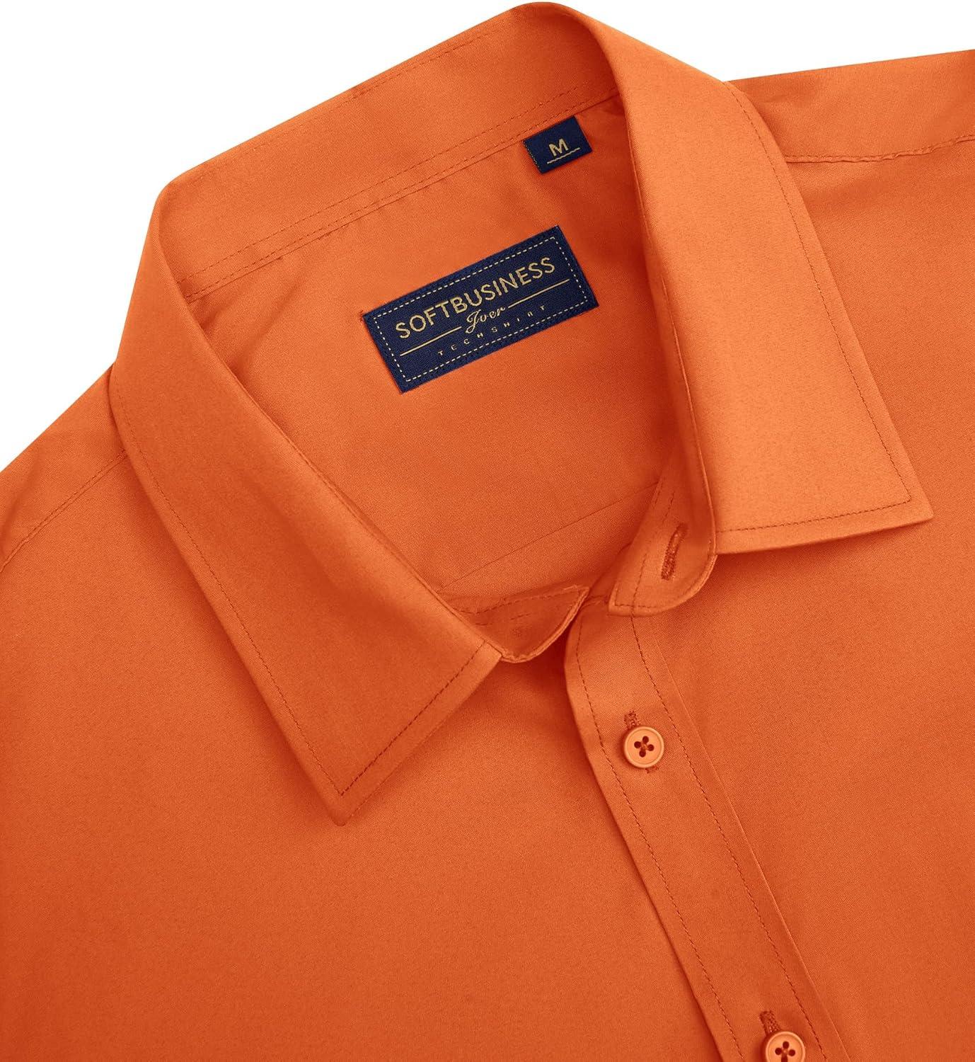 J.VER Men’s Short Sleeve Dress Shirts Stretch Stain Shield Casual Button Down Shirts Solid Formal Shirt(Orange)