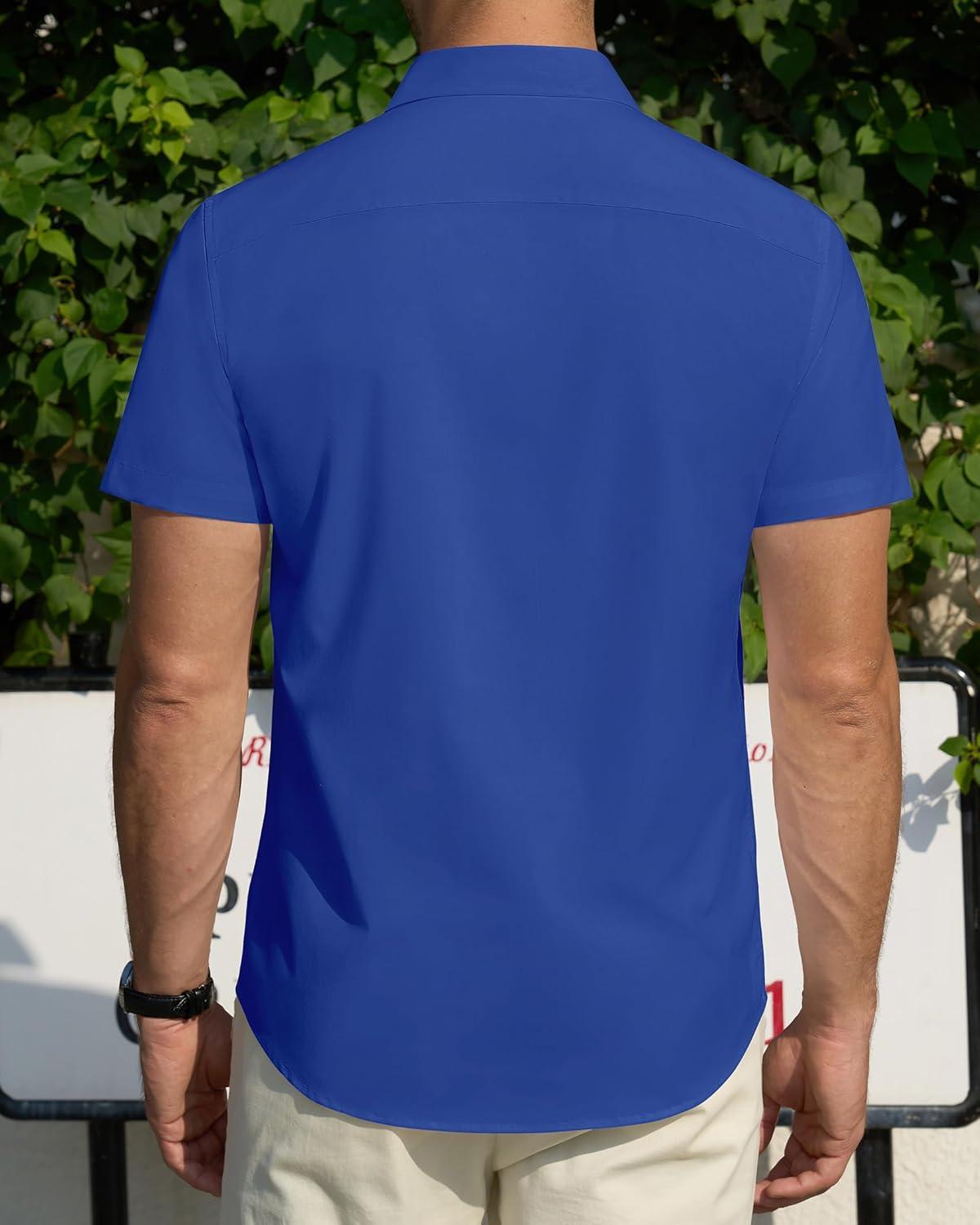 J.VER Men's Short Sleeve Dress Shirts Stretch Stain Shield Casual Button Down Shirts Solid Formal Shirt(Royal Blue)