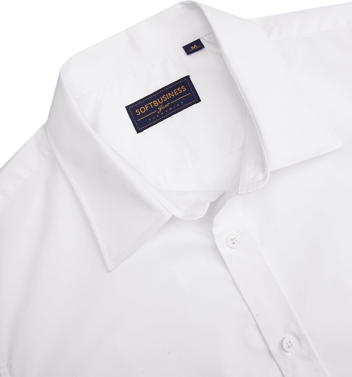 J.VER Men’s Short Sleeve Dress Shirts Stretch Stain Shield Casual Button Down Shirts Solid Formal Shirt(White)