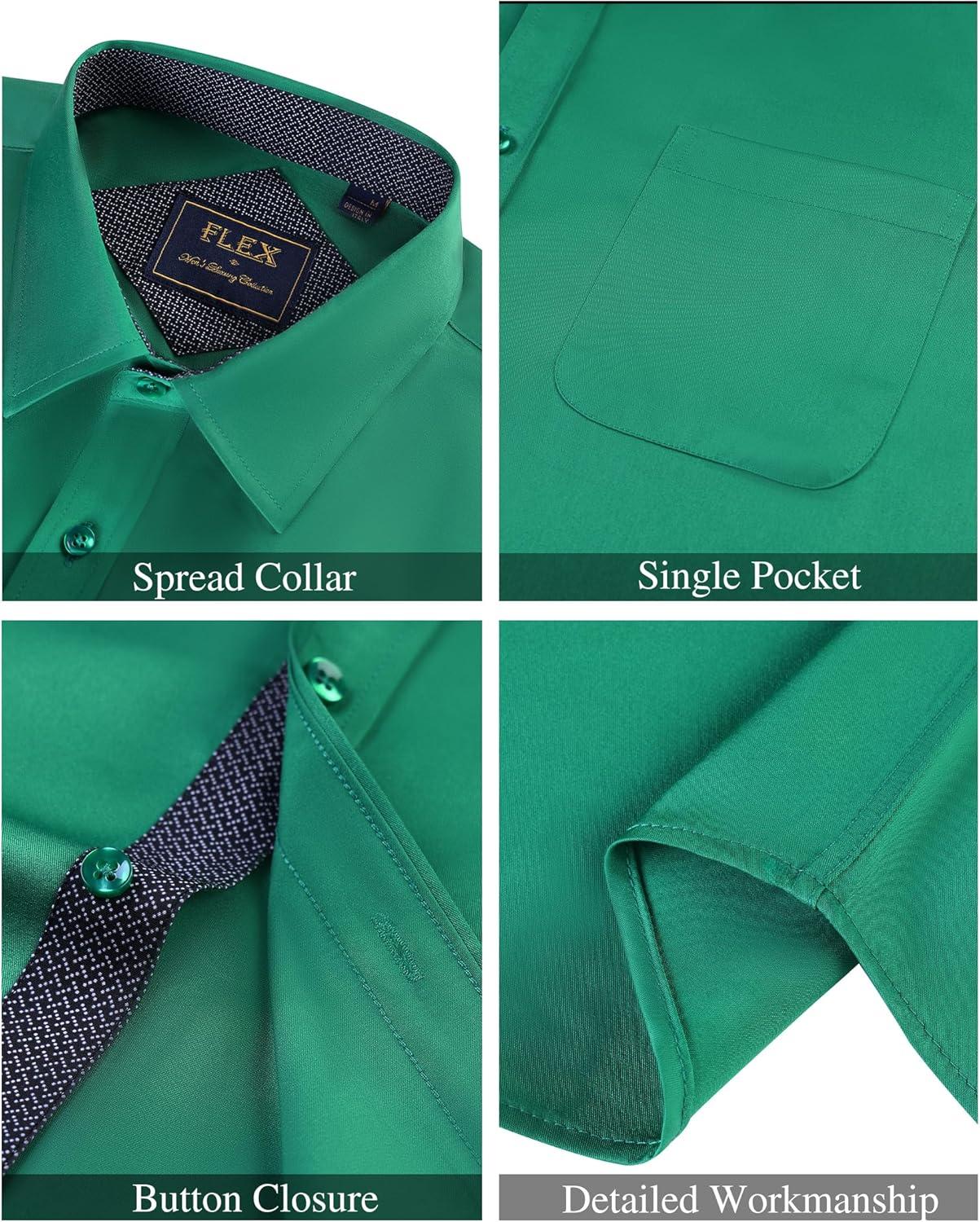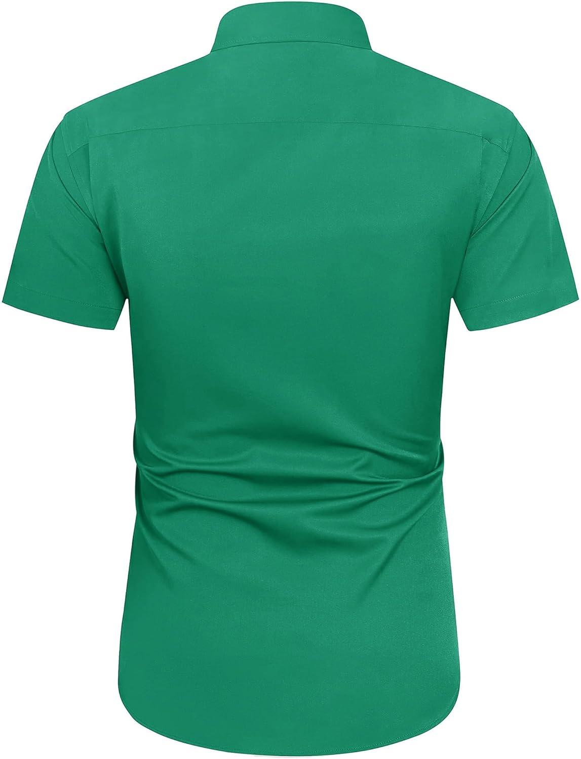 J.VER Men's Short Sleeve Dress Shirts Stretch Wrinkle Free Casual Button Down Shirts with Pocket for Business Wedding(Hunter Green)