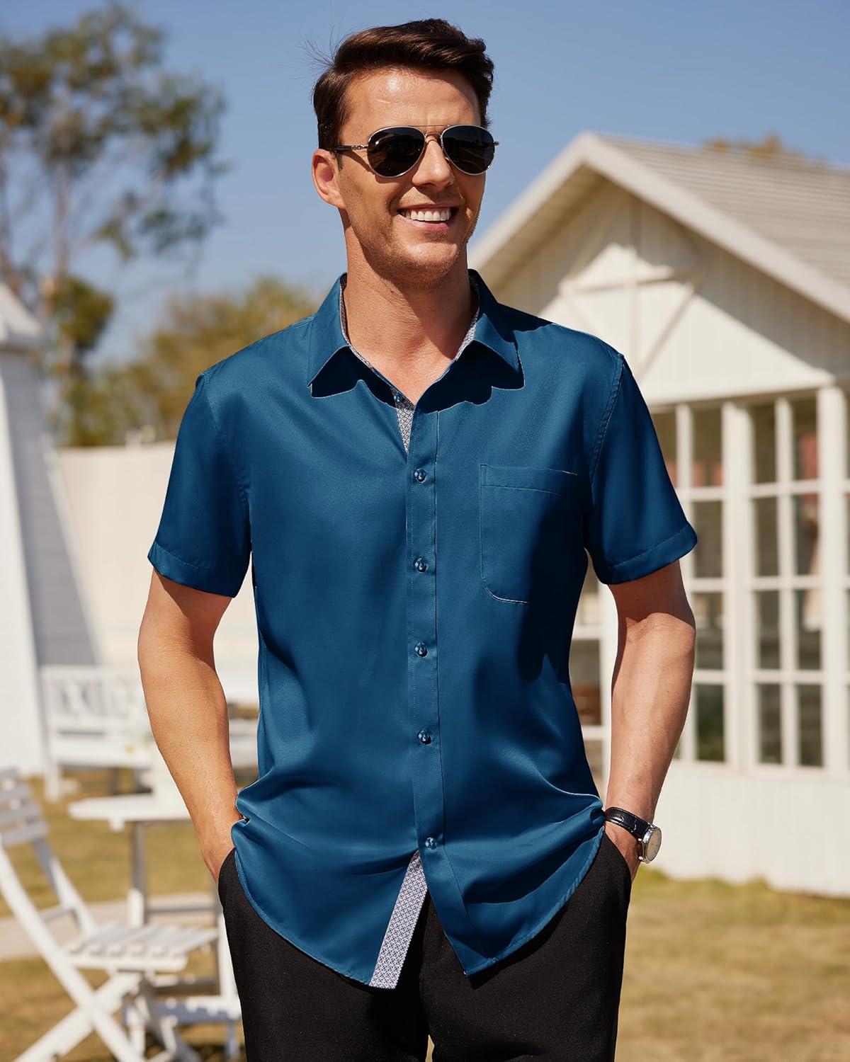 Don’t miss out on our limited-time offer: buy J.VER Men’s Short Sleeve Dress Shirts Stretch Wrinkle Free Casual Button Down Shirts with Pocket for Business Wedding(Ink Blue), get {accessory} 50% off!