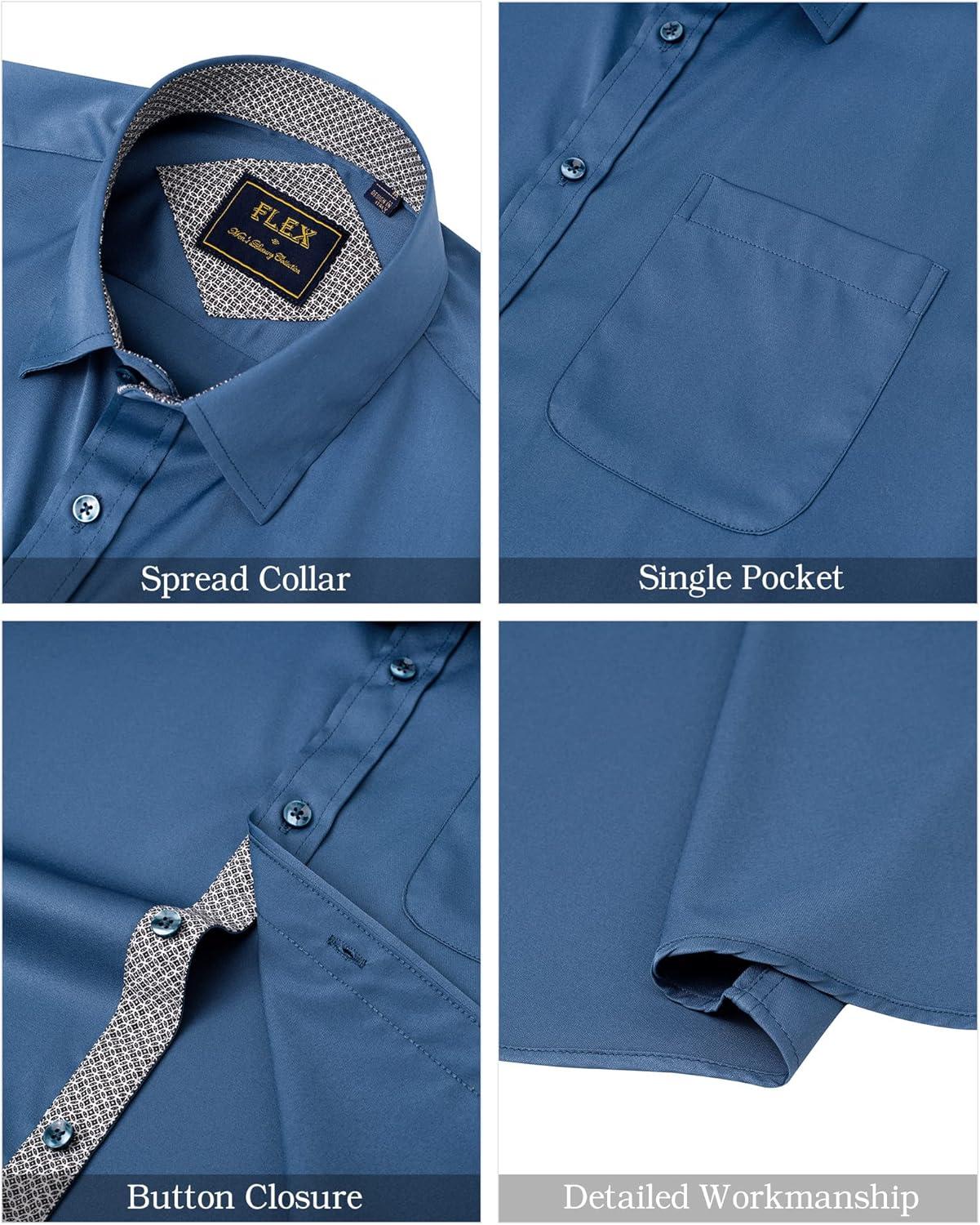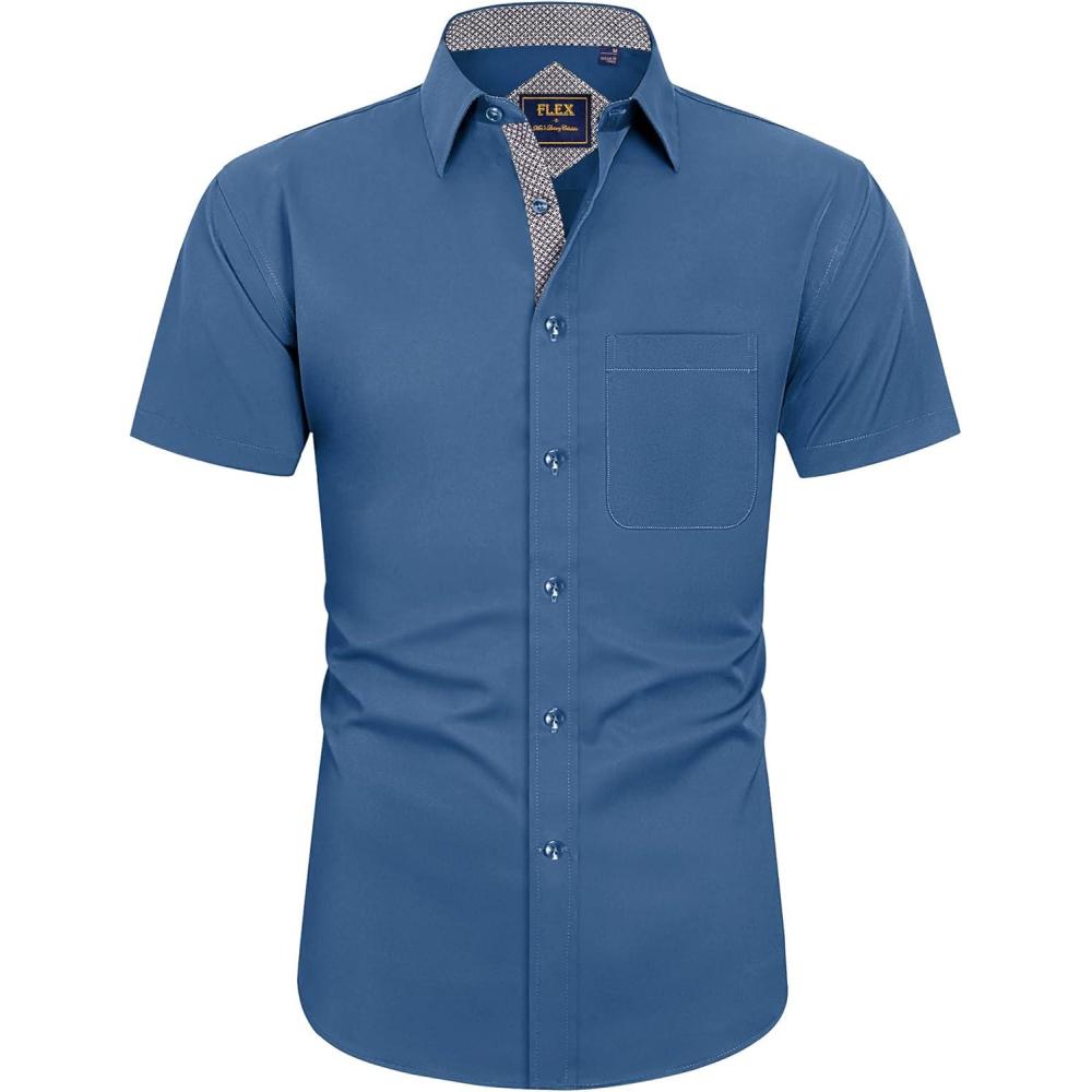 J.VER Men's Short Sleeve Dress Shirts Stretch Wrinkle Free Casual Button Down Shirts with Pocket for Business Wedding(Ink Blue)
