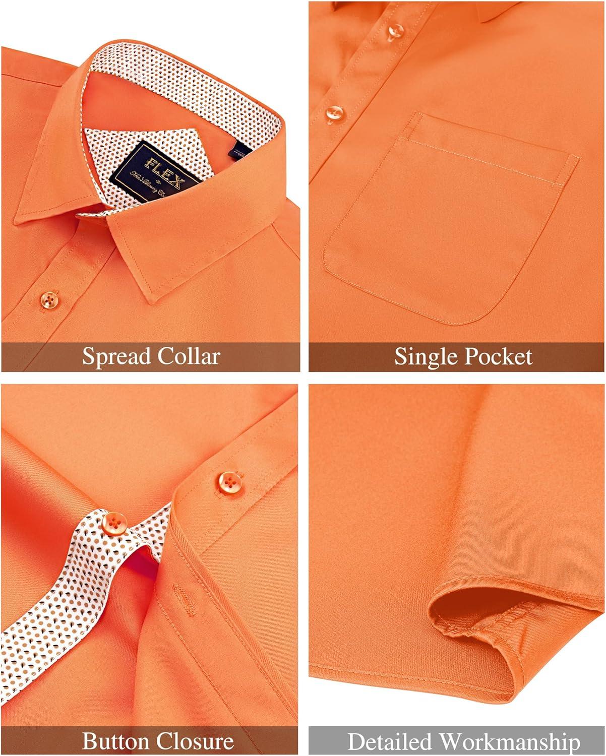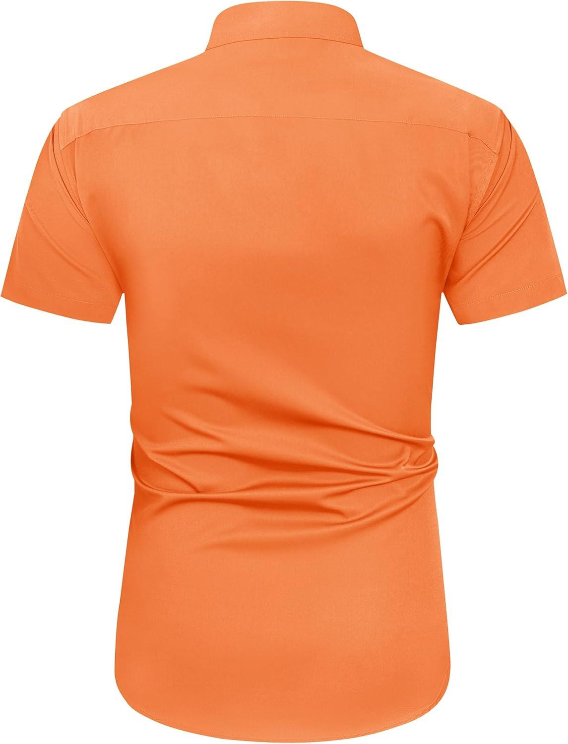 J.VER Men's Short Sleeve Dress Shirts Stretch Wrinkle Free Casual Button Down Shirts with Pocket for Business Wedding(Orange)