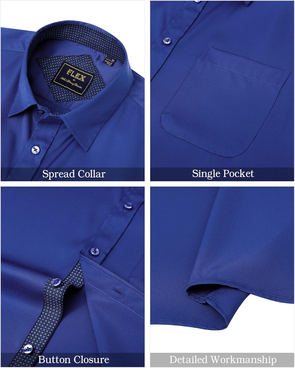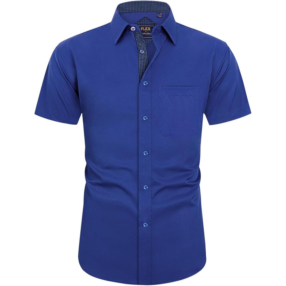 J.VER Men's Short Sleeve Dress Shirts Stretch Wrinkle Free Casual Button Down Shirts with Pocket for Business Wedding(Royal Blue)