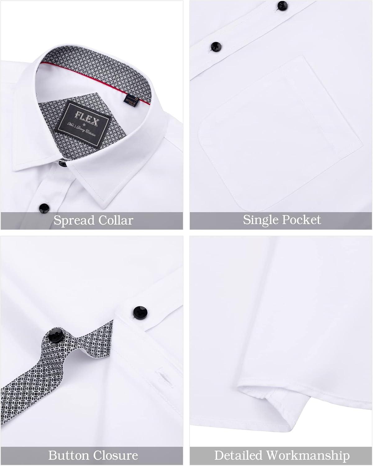 J.VER Men's Short Sleeve Dress Shirts Stretch Wrinkle Free Casual Button Down Shirts with Pocket for Business Wedding(White Black)