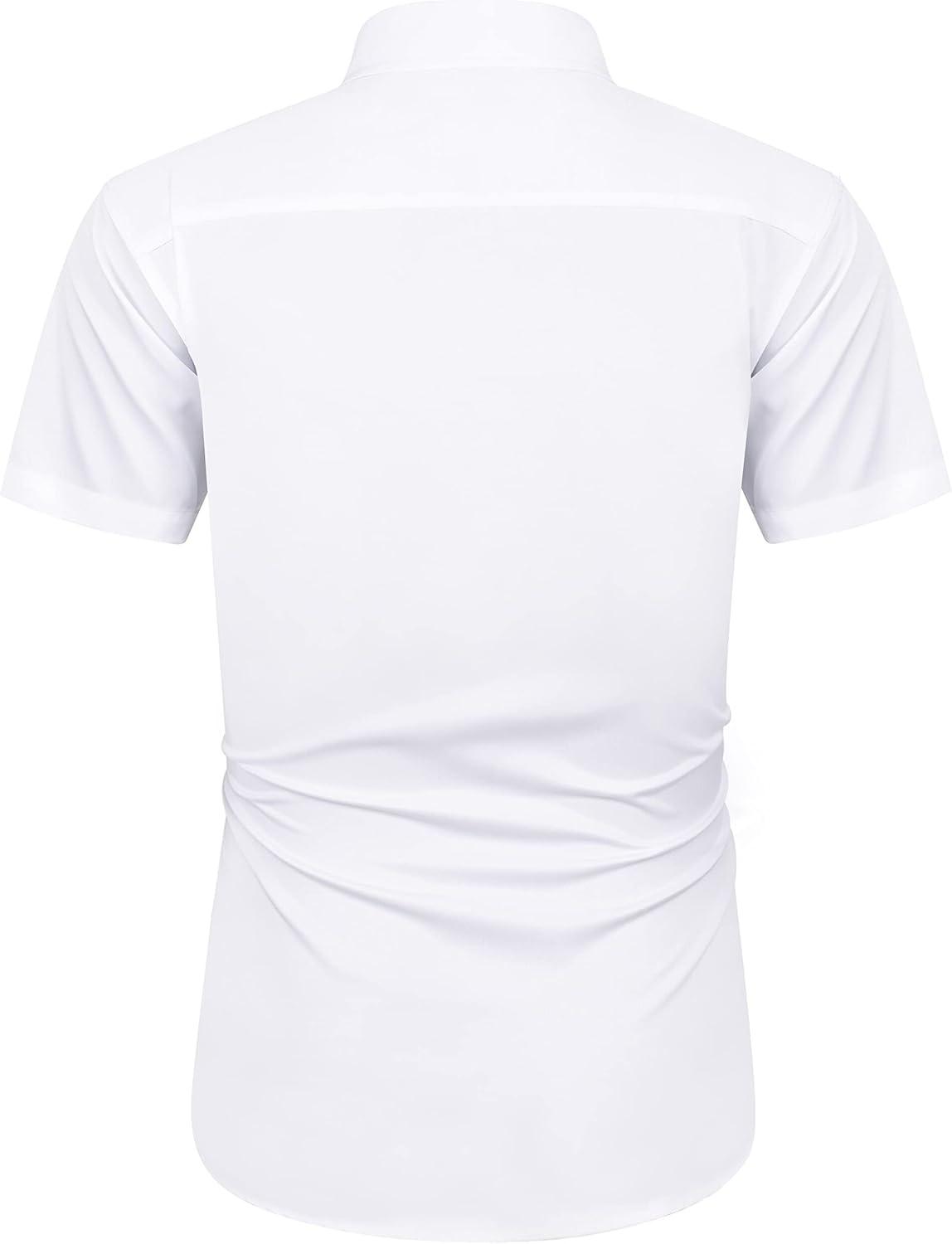 imageJVER Mens Short Sleeve Dress Shirts Stretch Wrinkle Free Casual Button Down Shirts with Pocket for Business WeddingWhite Black