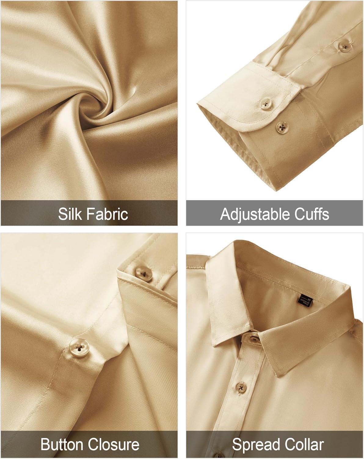 J.VER Men's Silk Satin Long Sleeve Dress Shirts Shiny Casual Button Down Shirt Luxury Party Prom Shirts(Gold)