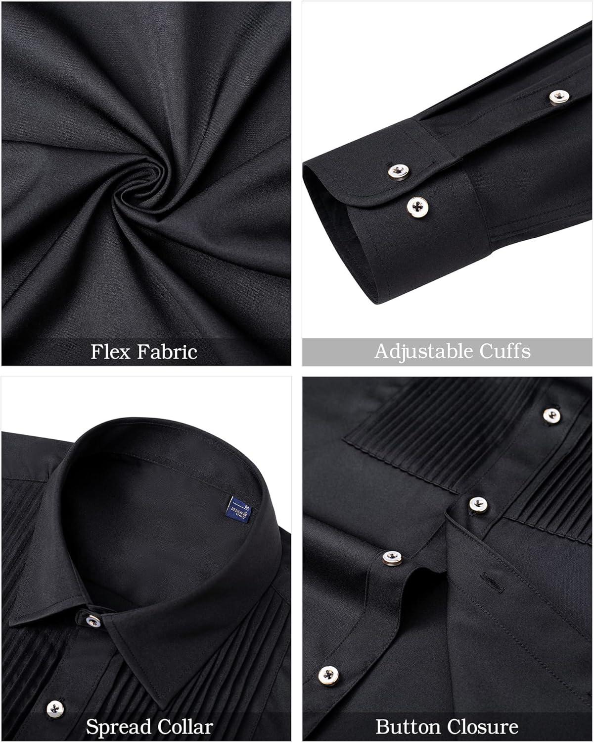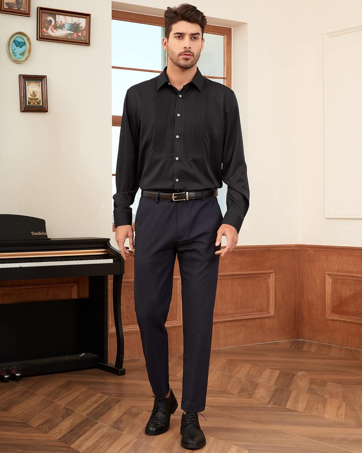 J.VER Men's Tuxedo Shirt Formal Dress Shirt Pleated Long Sleeve Button Down Shirts for Prom Party Wedding(Black)
