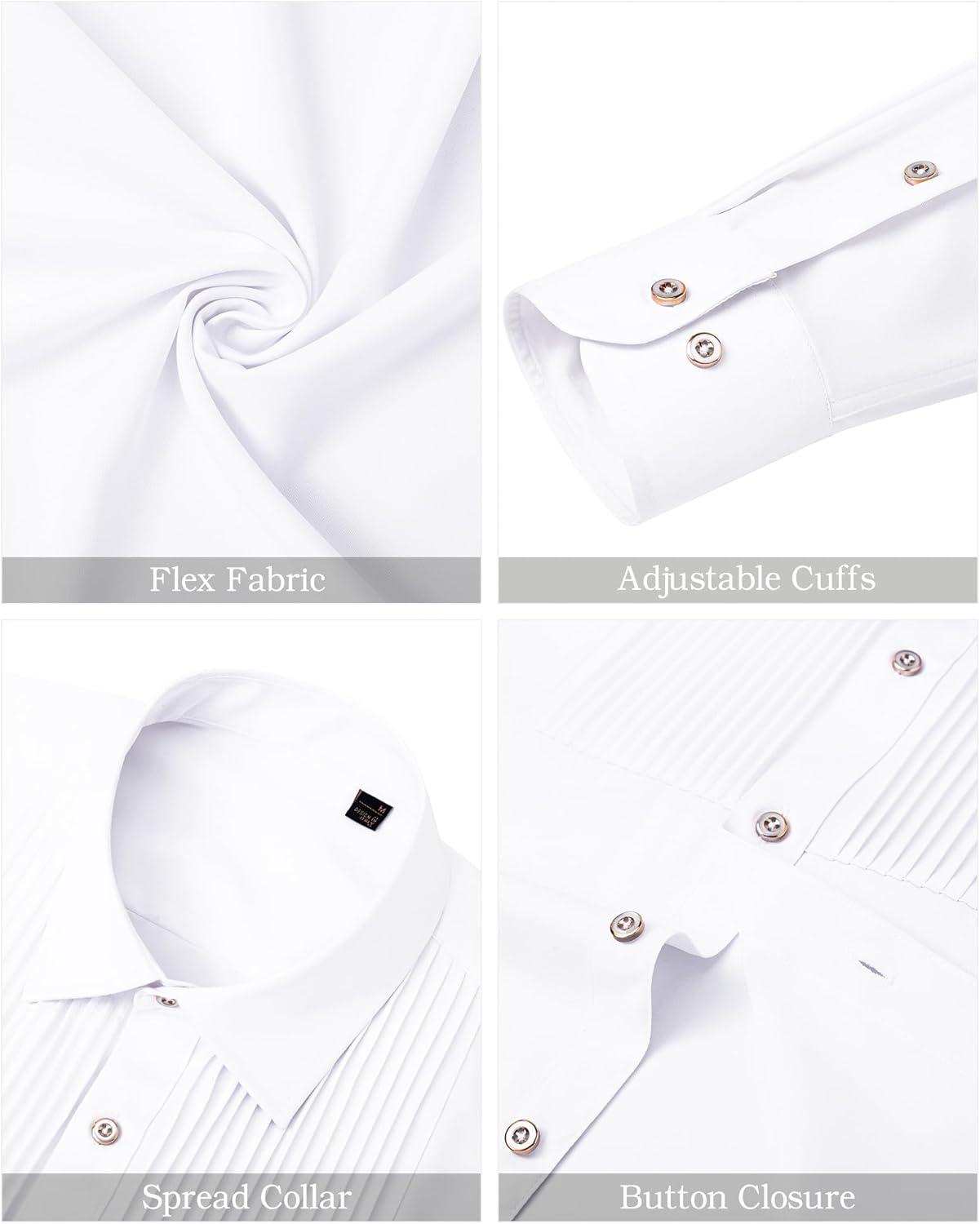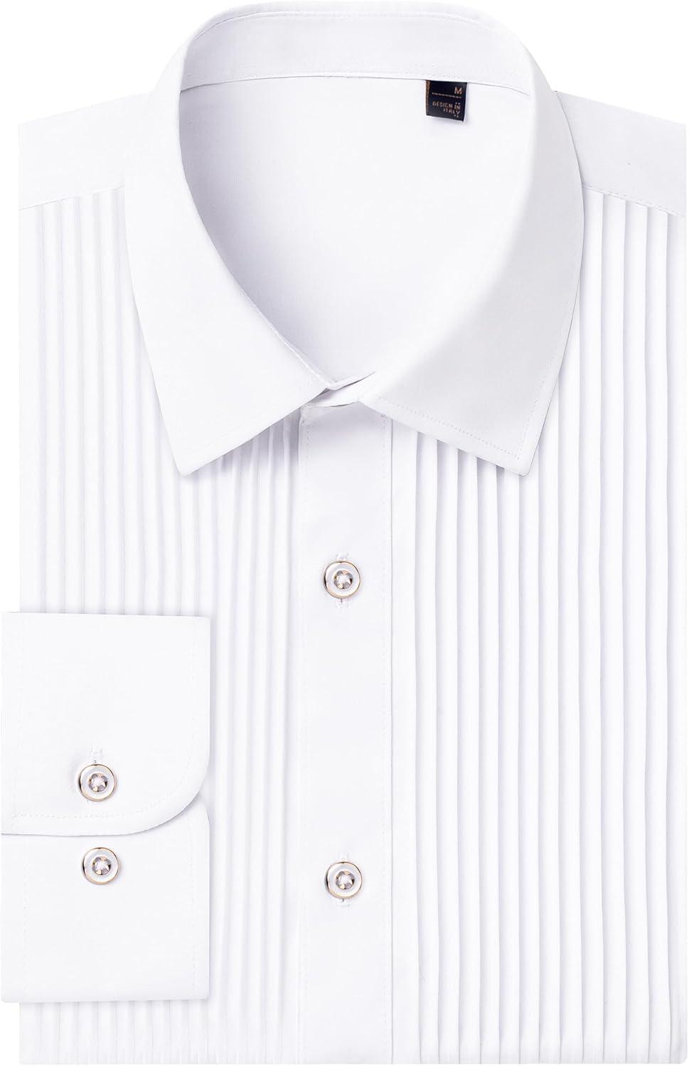 J.VER Men's Tuxedo Shirt Formal Dress Shirt Pleated Long Sleeve Button Down Shirts for Prom Party Wedding(Solid White)