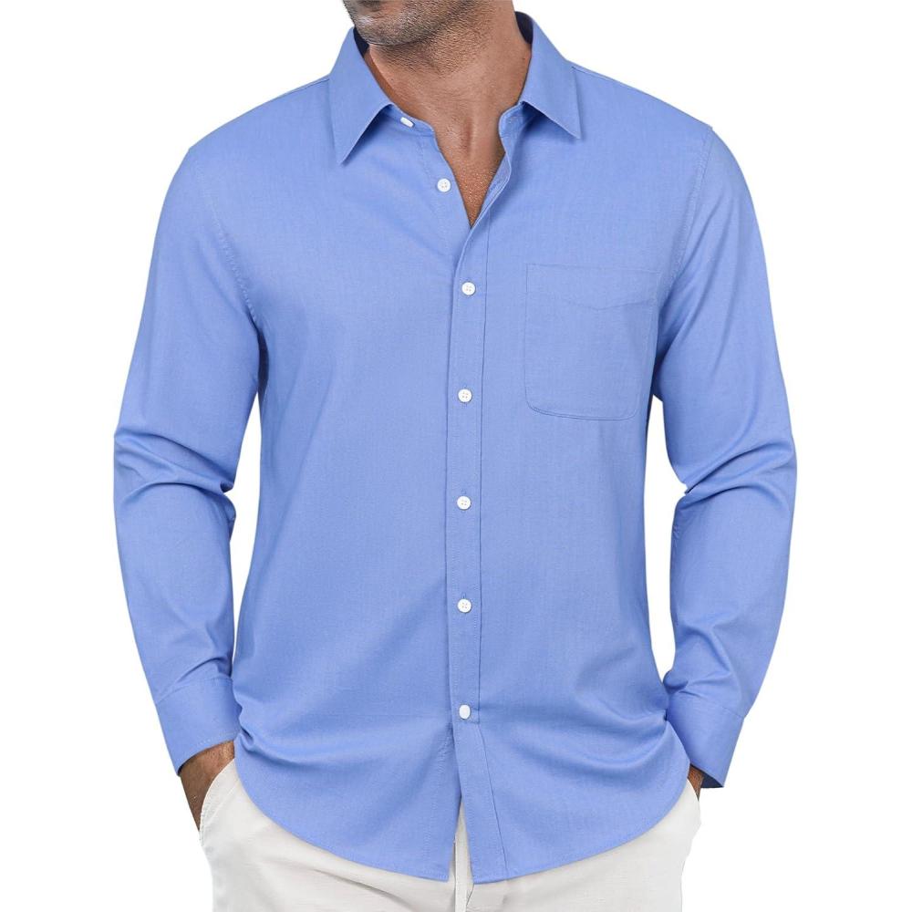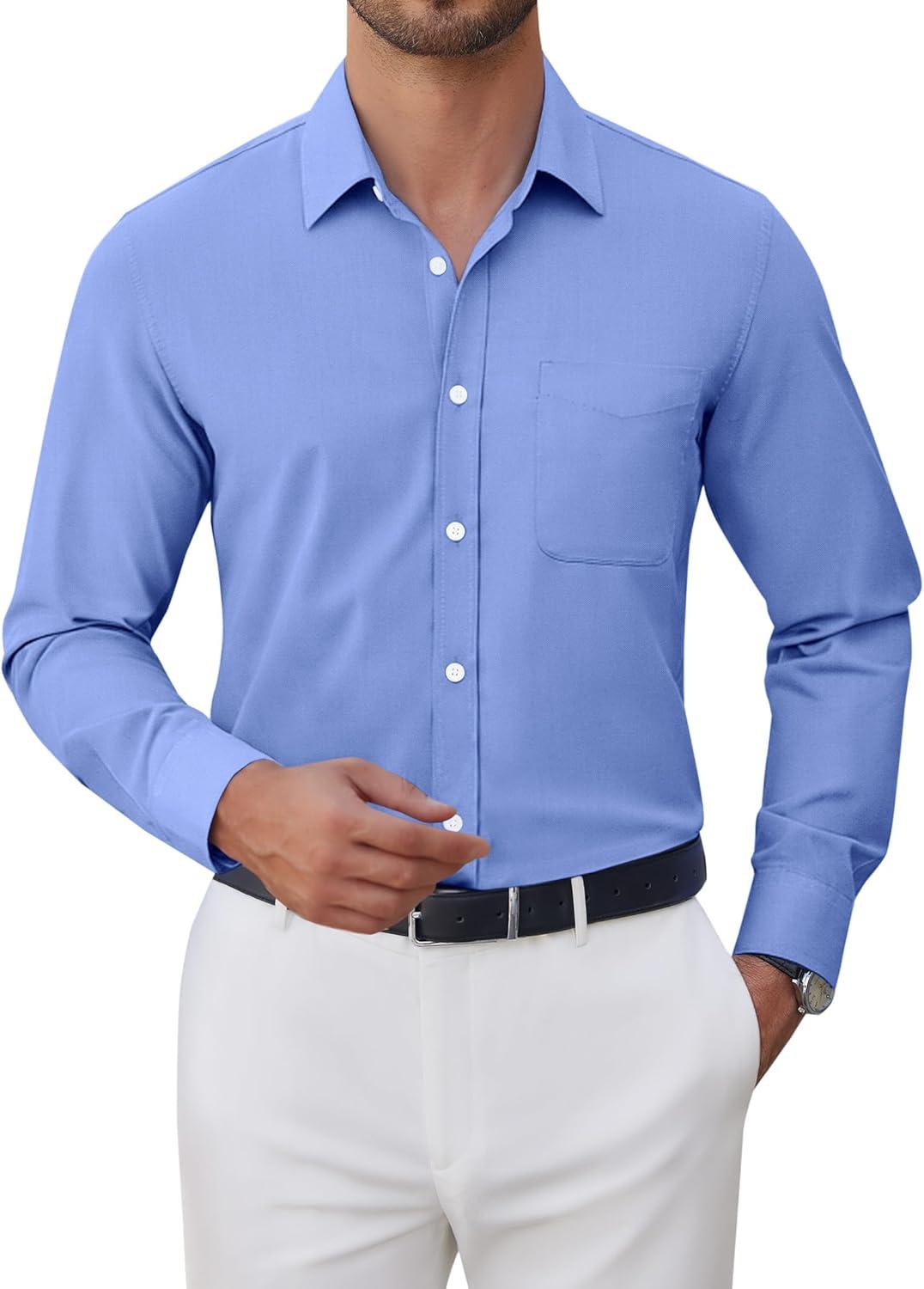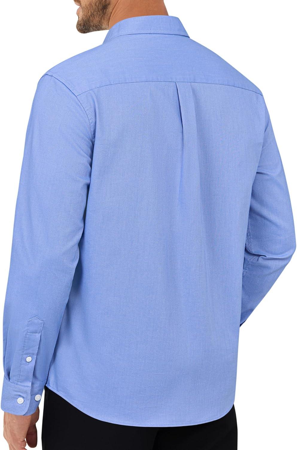 J.VER Oxford Shirts for Men Stretch Button Down Shirts Solid Casual Long Sleeve Dress Shirts with Pocket(Blue)