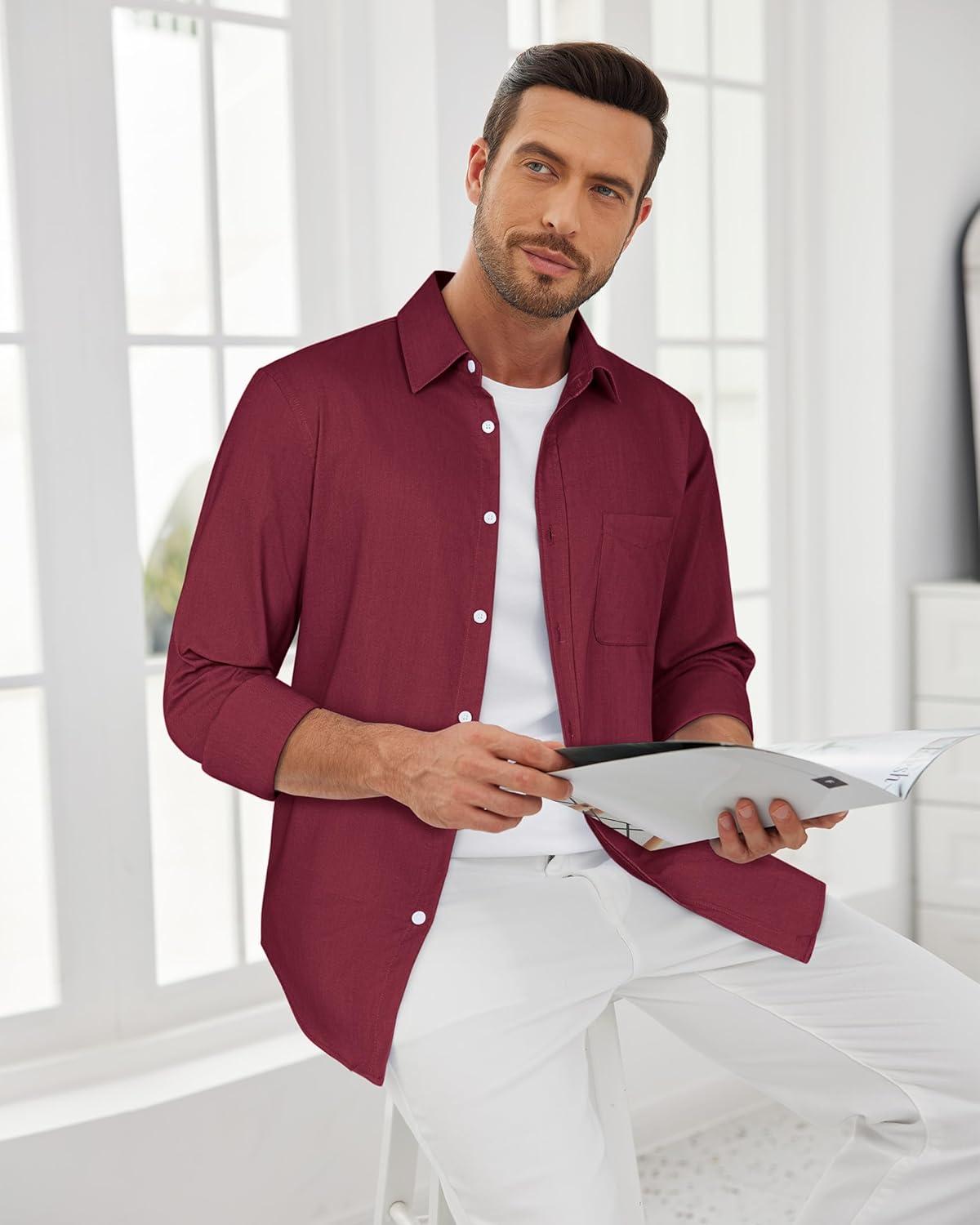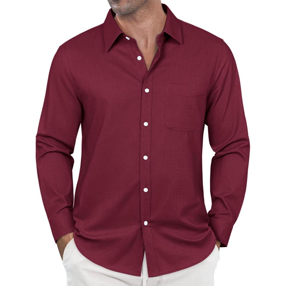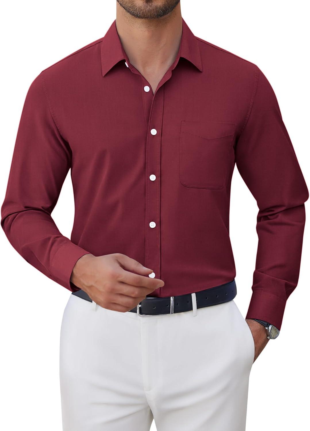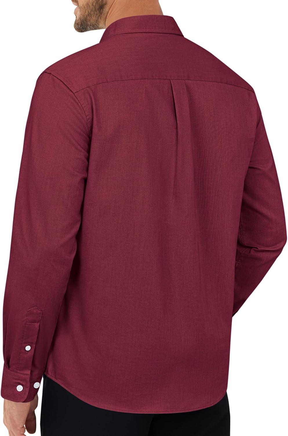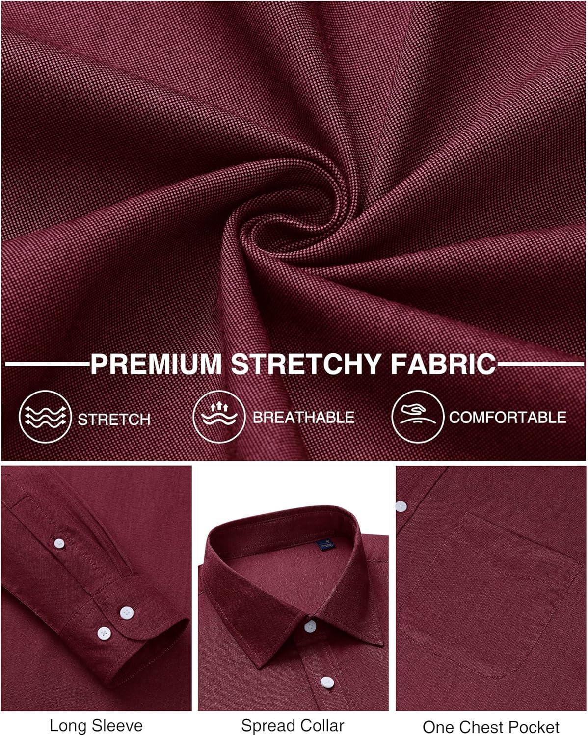 J.VER Oxford Shirts for Men Stretch Button Down Shirts Solid Casual Long Sleeve Dress Shirts with Pocket(Burgundy)