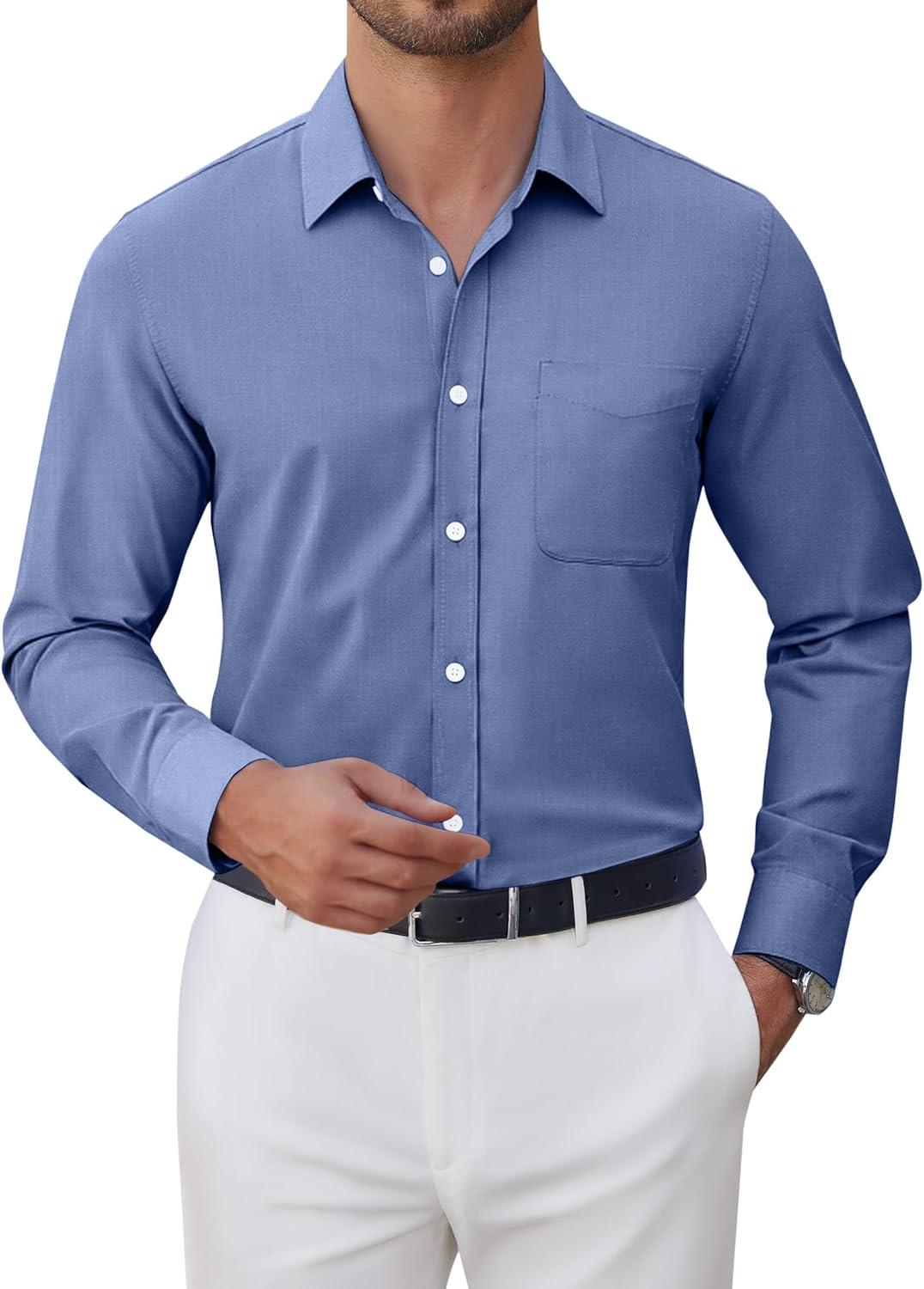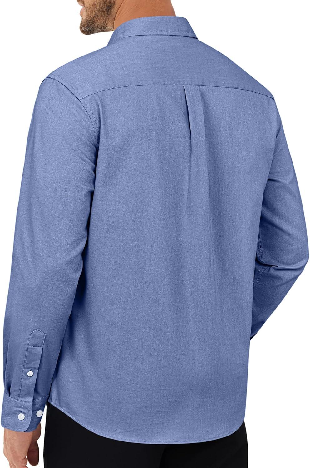 J.VER Oxford Shirts for Men Stretch Button Down Shirts Solid Casual Long Sleeve Dress Shirts with Pocket(Blue)