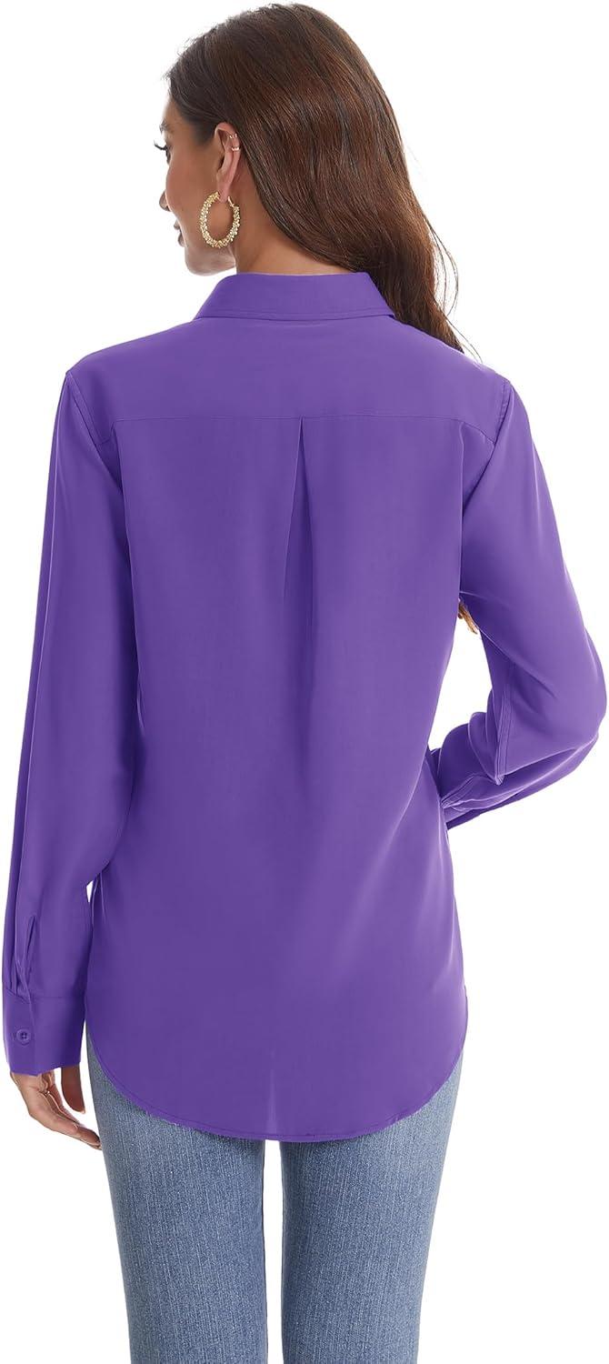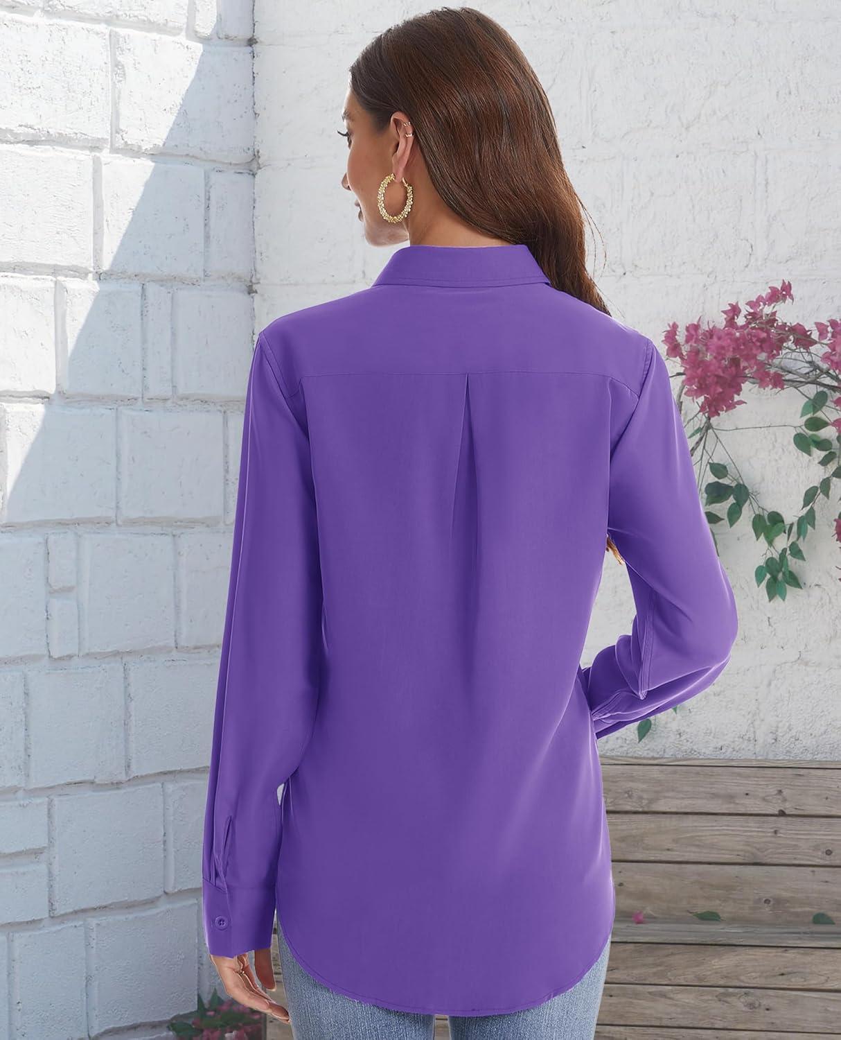 J.VER Women’s Button Down Shirt Long Sleeve Solid Dress Shirts Chiffon Work Office Blouse Fashion Formal Business Casual Tops(Dark Purple)