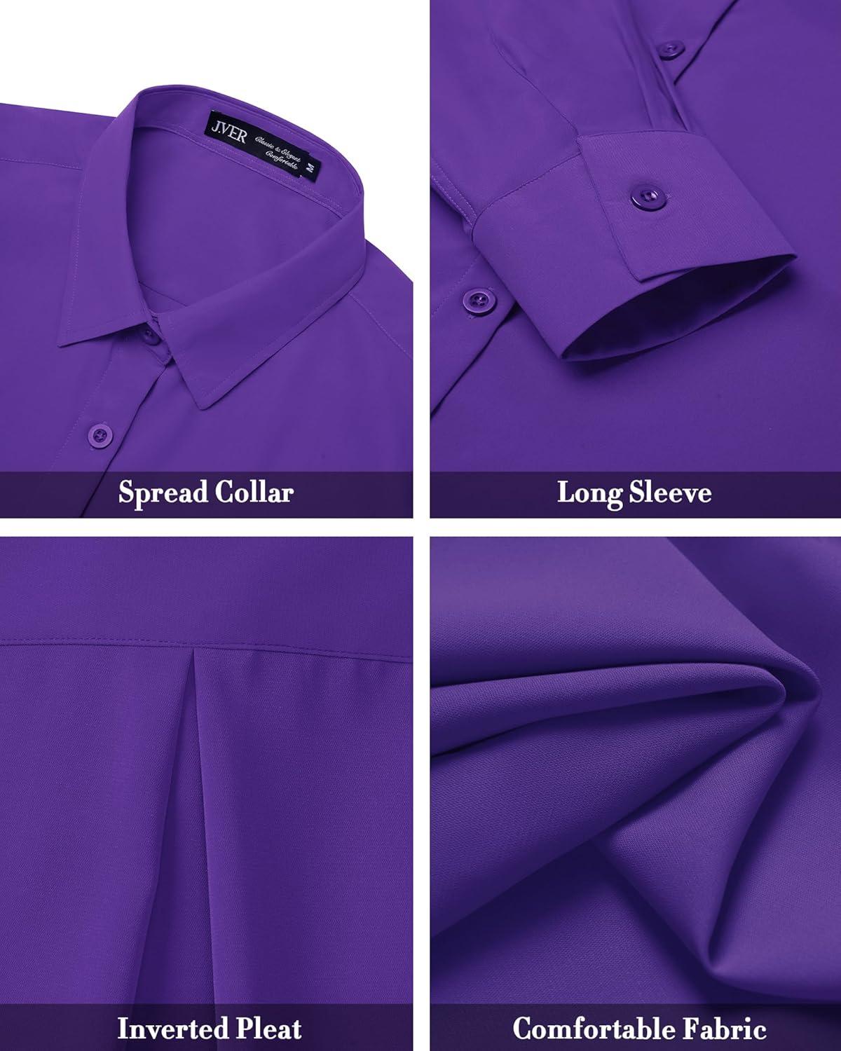 J.VER Women's Button Down Shirt Long Sleeve Solid Dress Shirts Chiffon Work Office Blouse Fashion Formal Business Casual Tops(Dark Purple)
