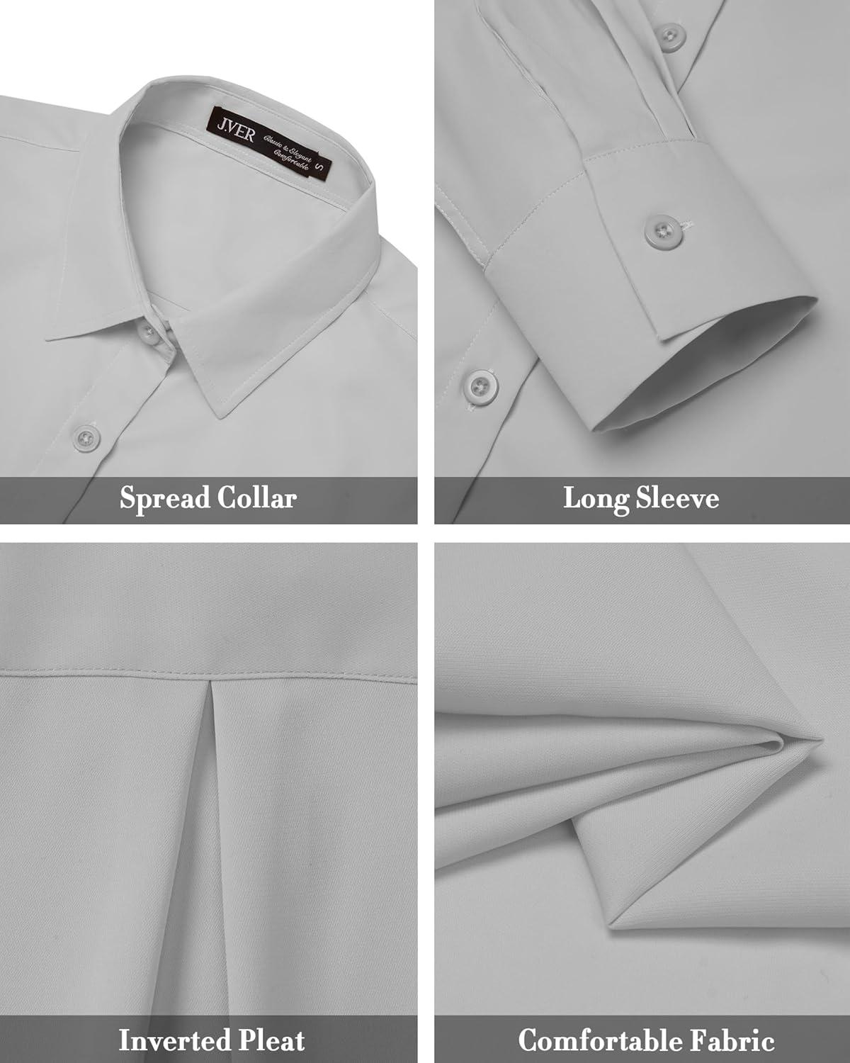 J.VER Women's Button Down Shirt Long Sleeve Solid Dress Shirts Chiffon Work Office Blouse Fashion Formal Business Casual Tops(Light Grey)