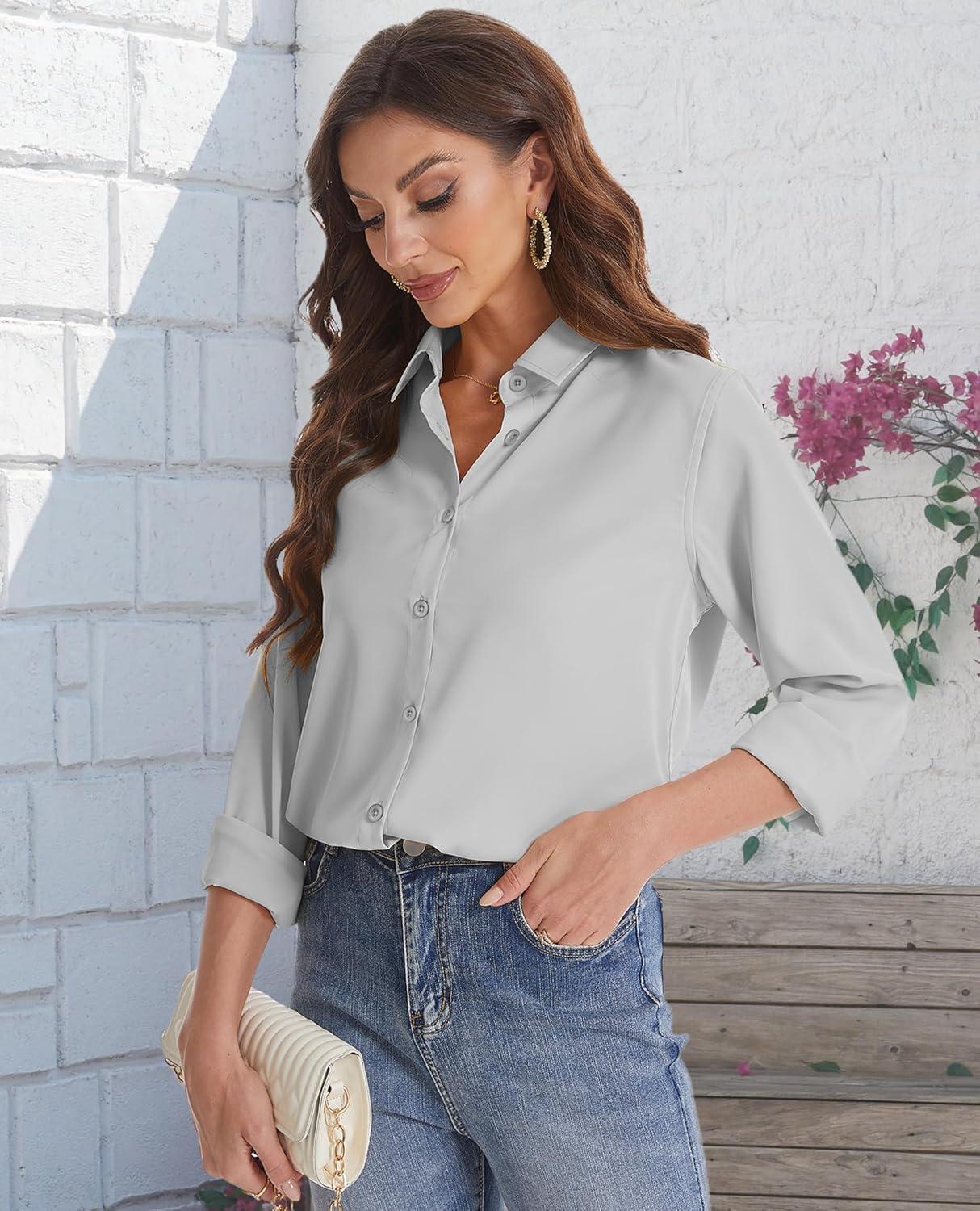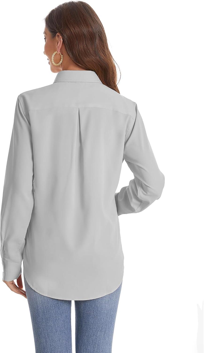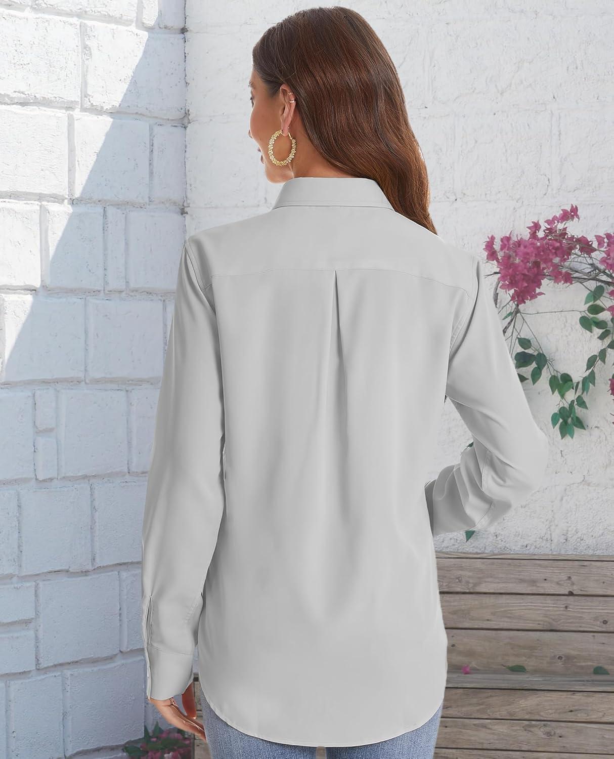 J.VER Women’s Button Down Shirt Long Sleeve Solid Dress Shirts Chiffon Work Office Blouse Fashion Formal Business Casual Tops(Light Grey)