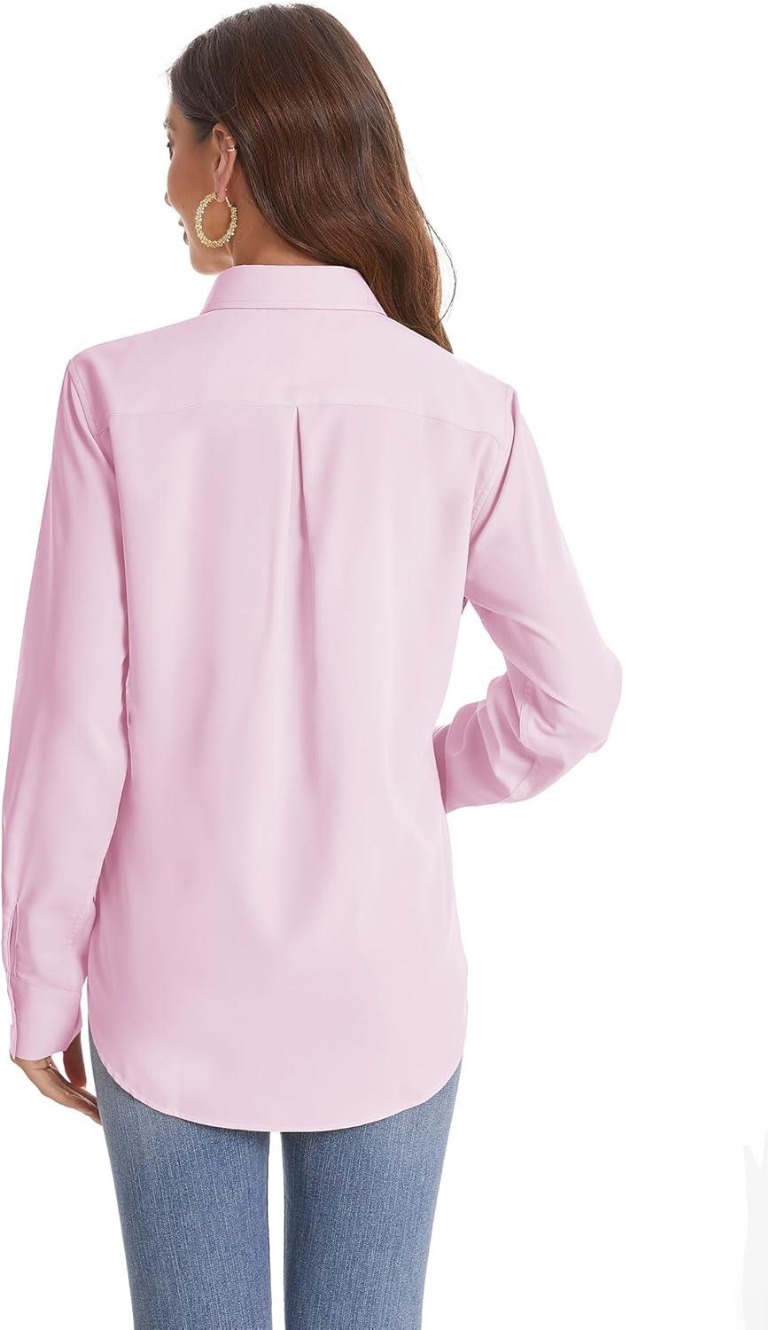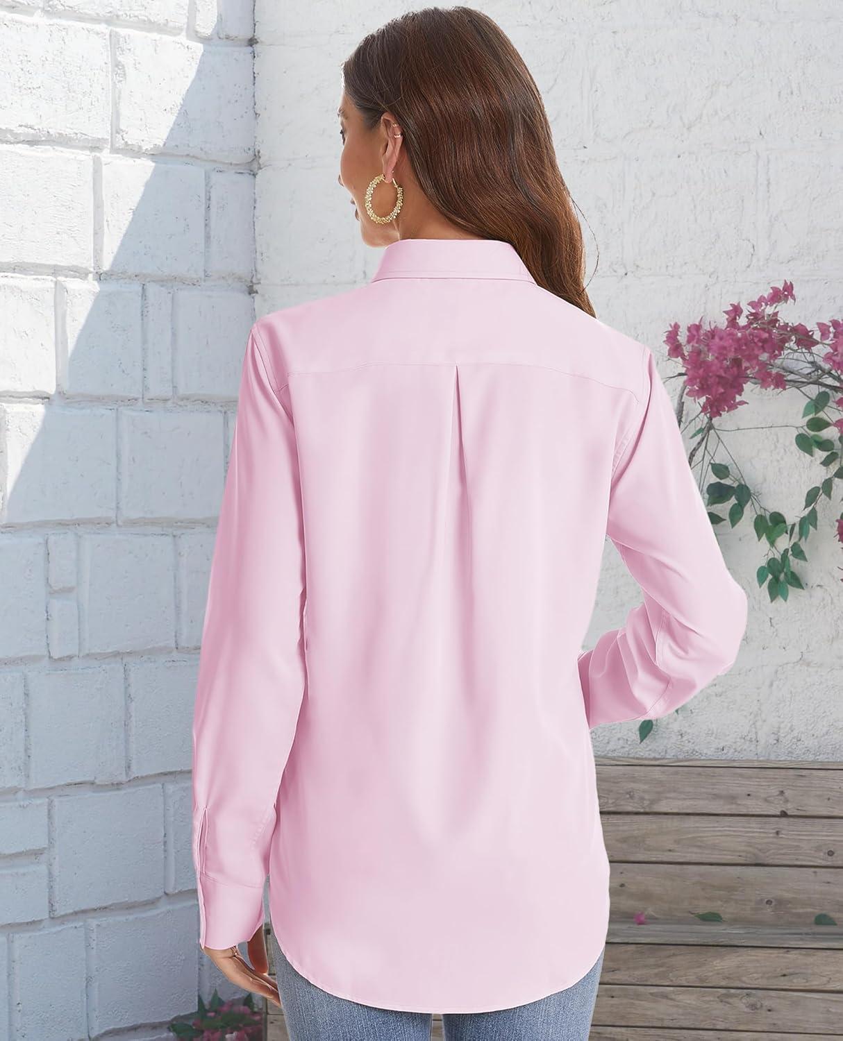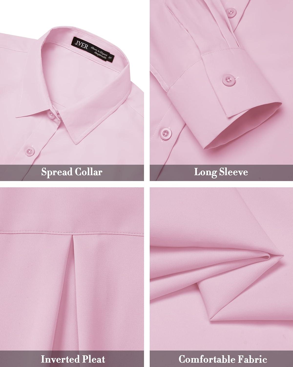 J.VER Women’s Button Down Shirt Long Sleeve Solid Dress Shirts Chiffon Work Office Blouse Fashion Formal Business Casual Tops(Light Pink)