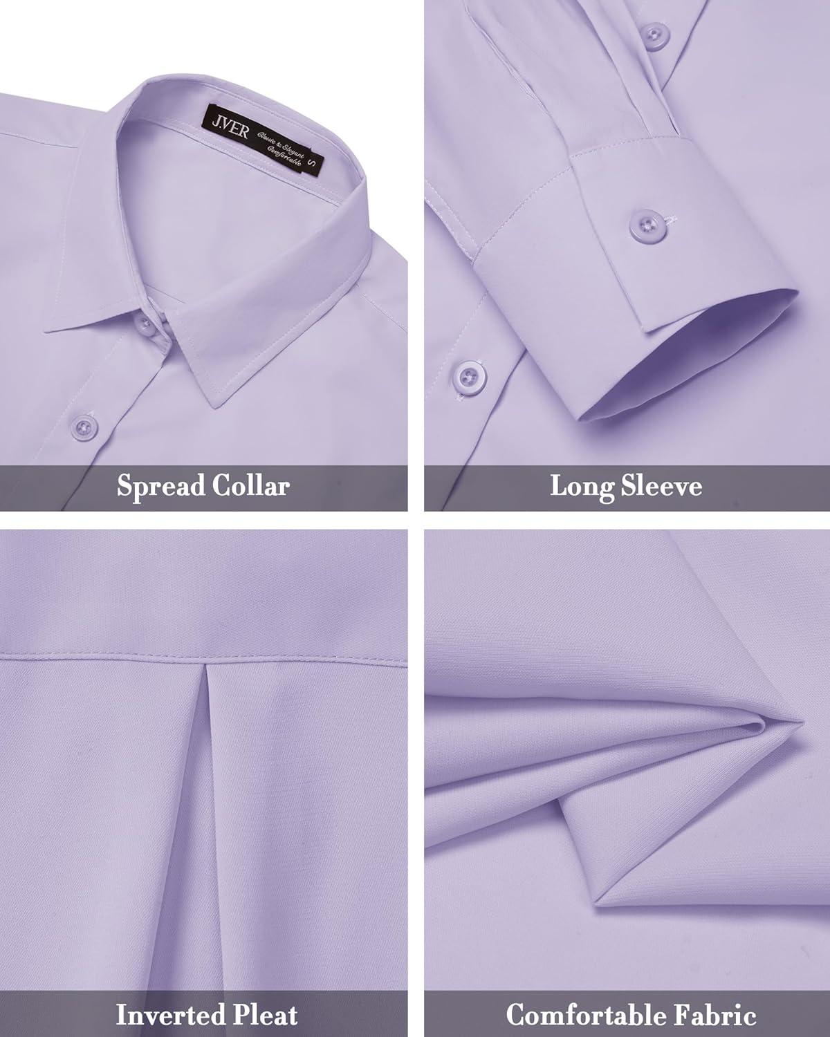 J.VER Women's Button Down Shirt Long Sleeve Solid Dress Shirts Chiffon Work Office Blouse Fashion Formal Business Casual Tops(Light Purple)