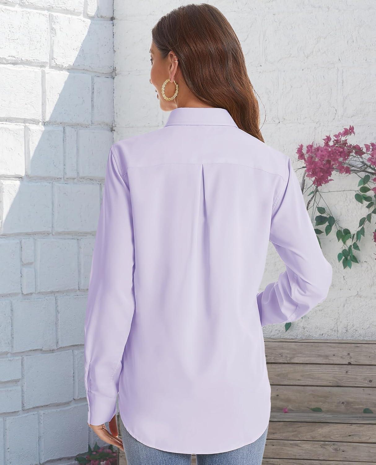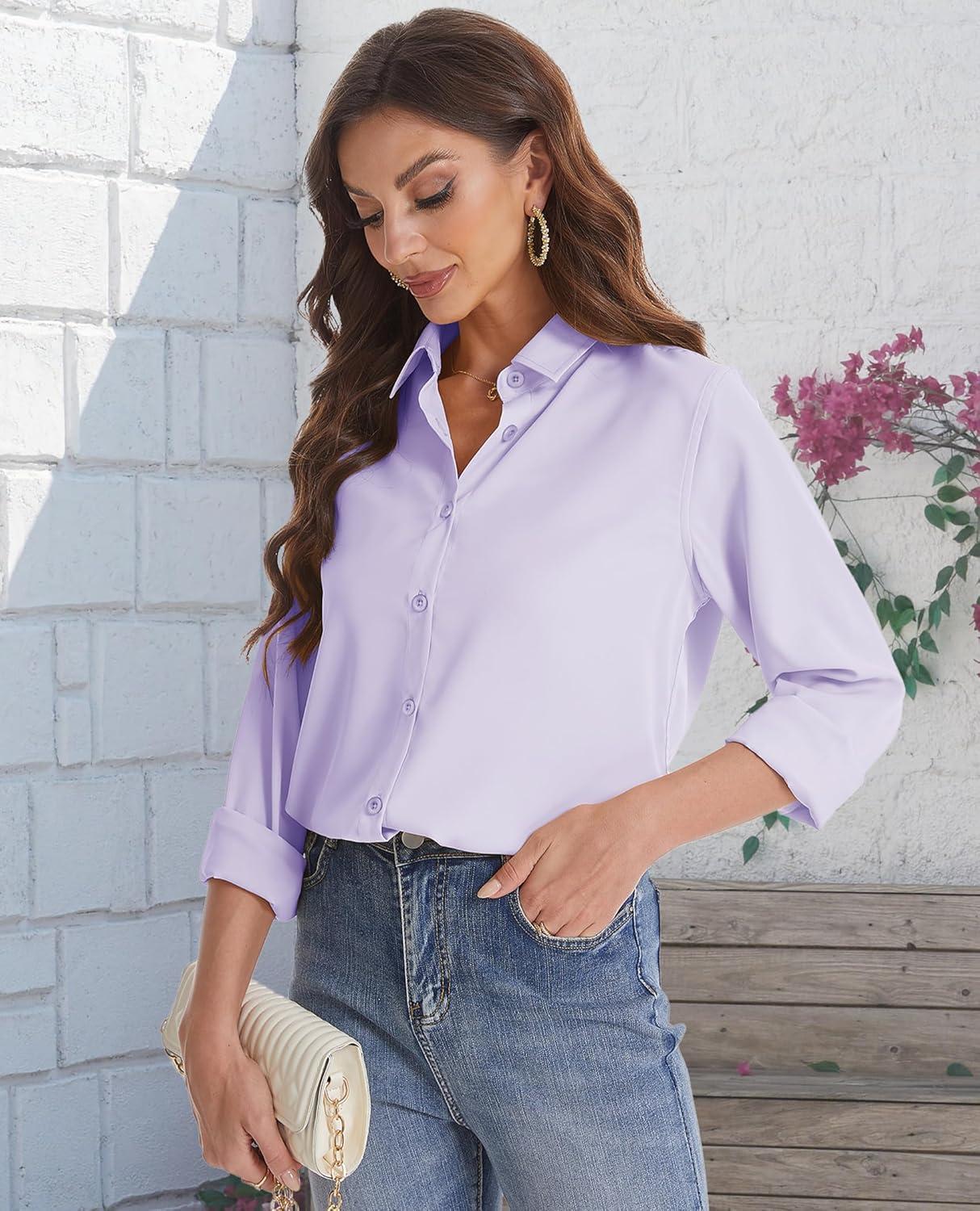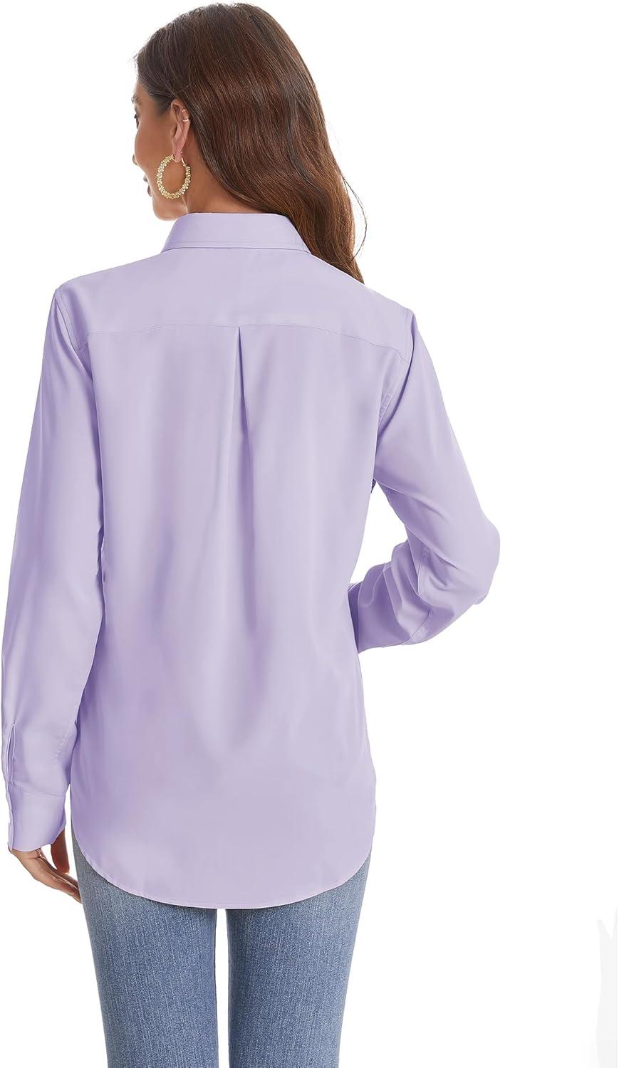 J.VER Women’s Button Down Shirt Long Sleeve Solid Dress Shirts Chiffon Work Office Blouse Fashion Formal Business Casual Tops(Light Purple)