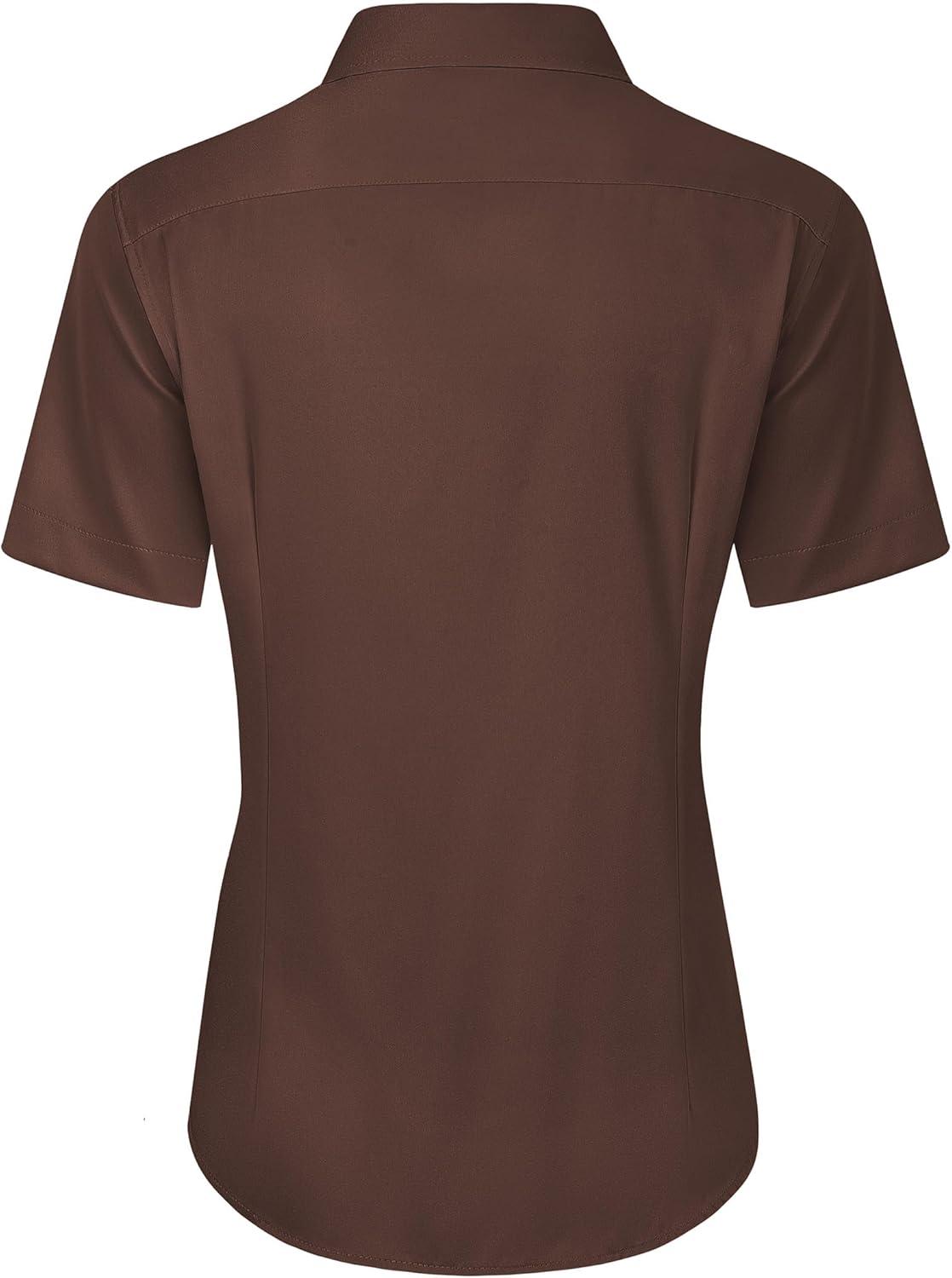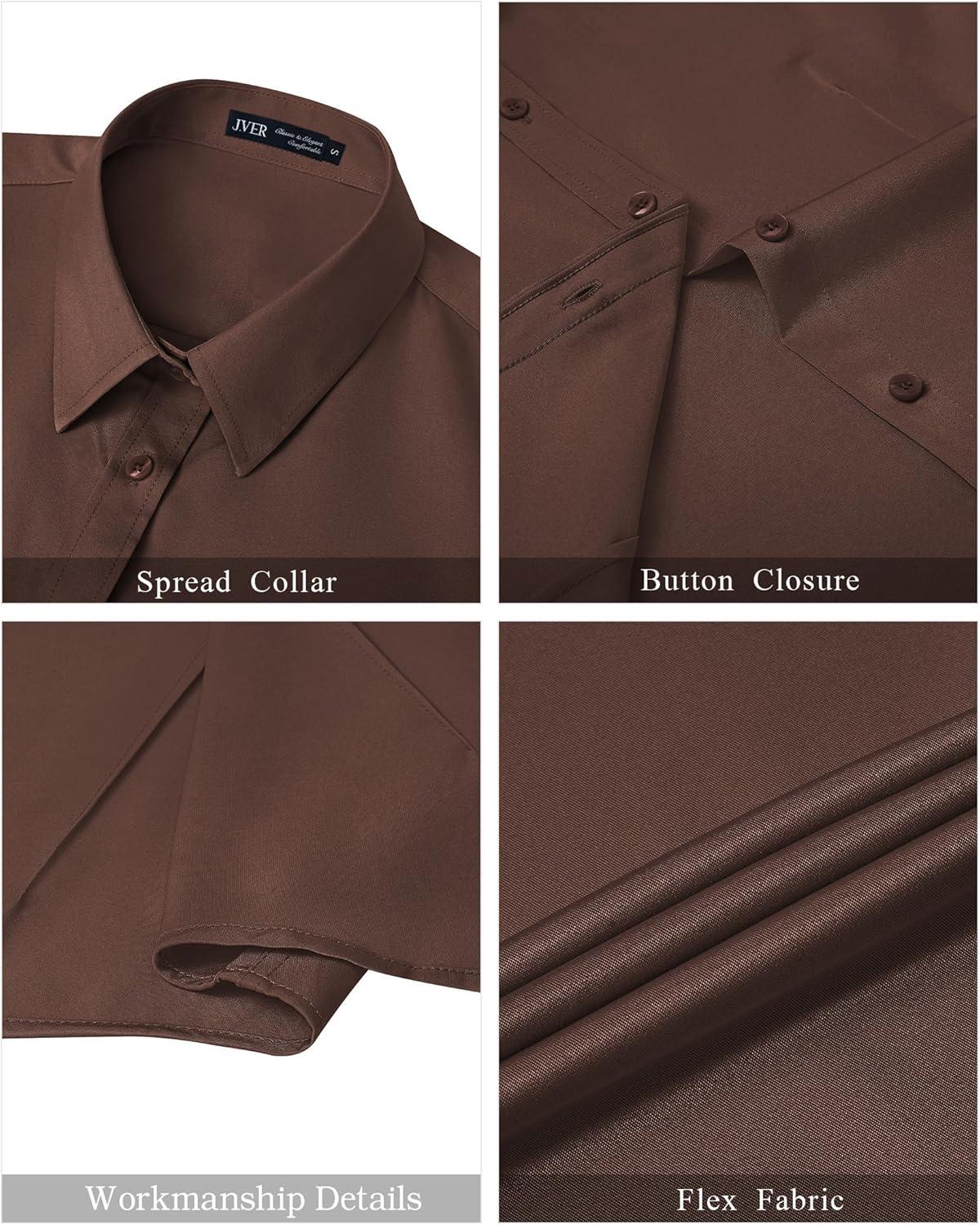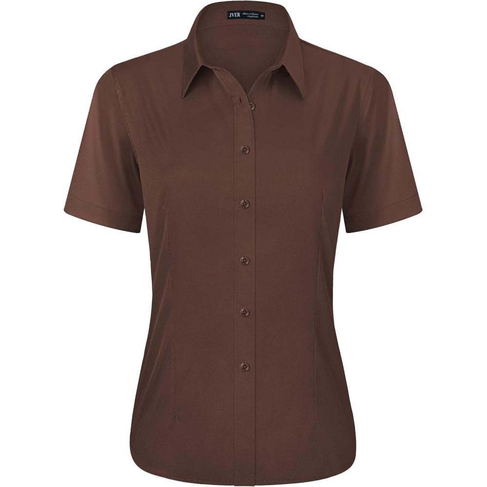 J.VER Womens Button Down Shirts Stretch Wrinkle Free Formal Short Sleeve Dress Shirt Summer Work Blouses Business Casual Tops(Coffee)