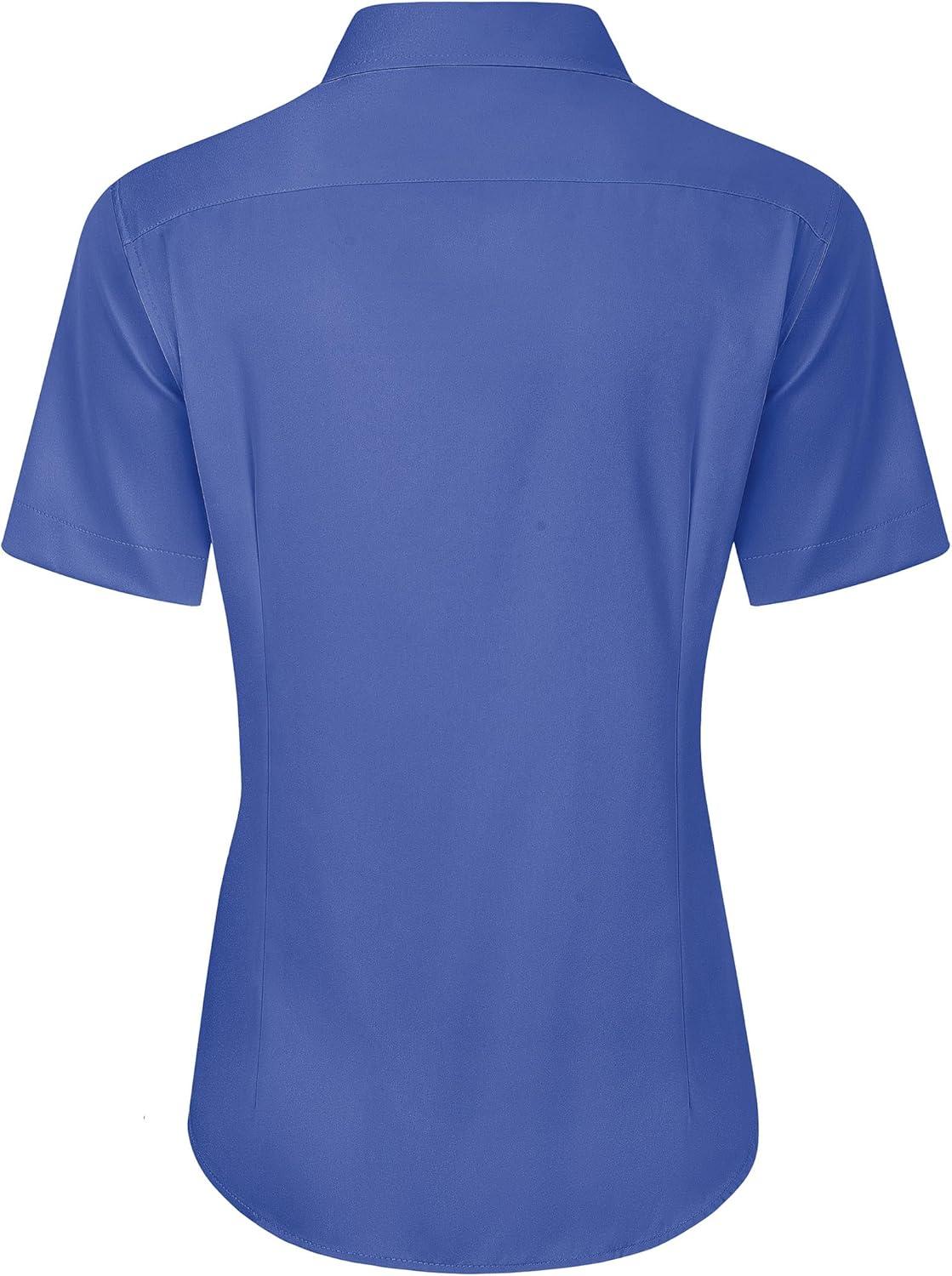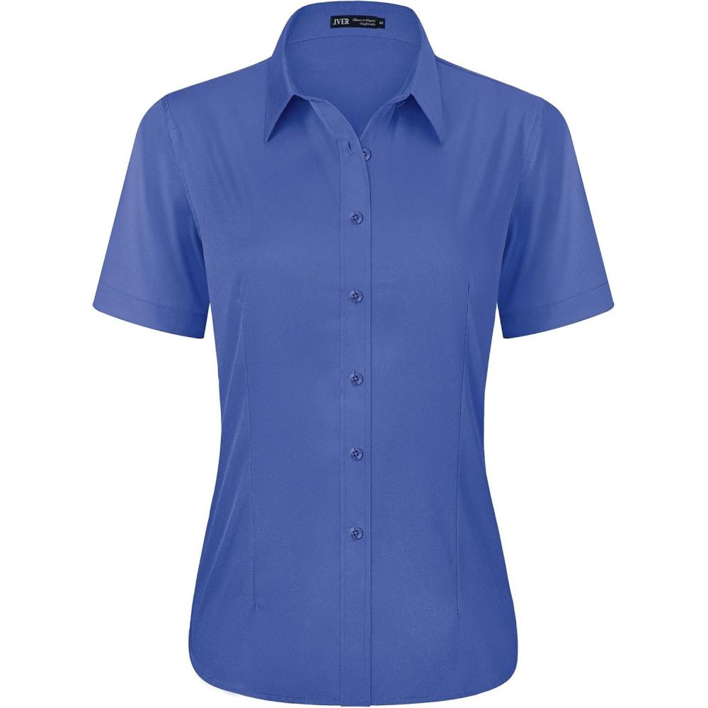 J.VER Womens Button Down Shirts Stretch Wrinkle Free Formal Short Sleeve Dress Shirt Summer Work Blouses Business Casual Tops(Indigo Blue)
