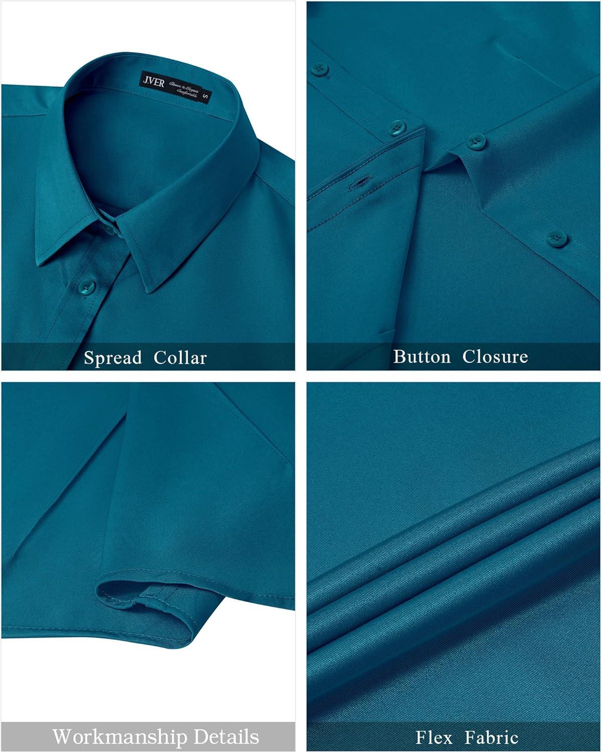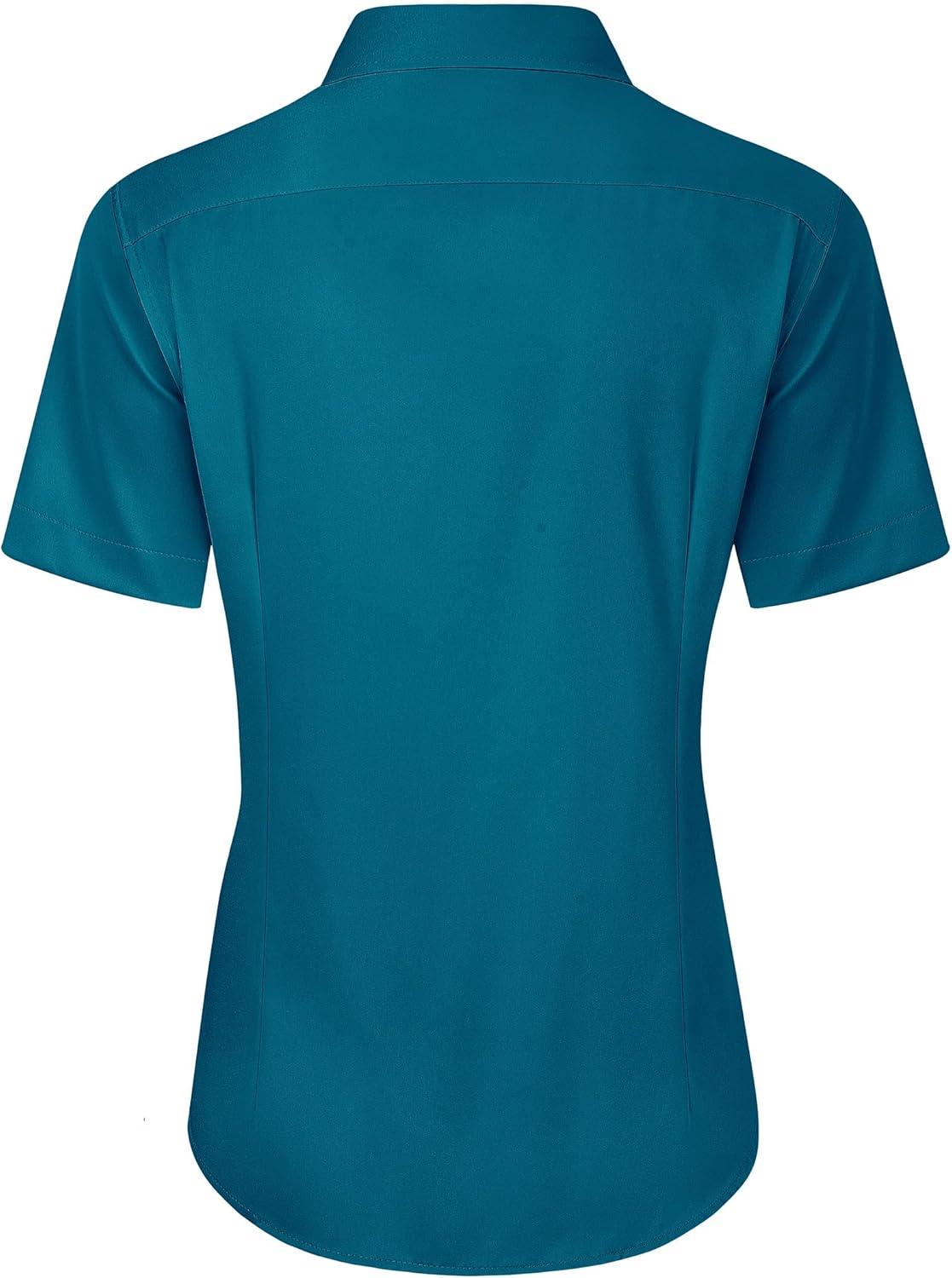J.VER Womens Button Down Shirts Stretch Wrinkle Free Formal Short Sleeve Dress Shirt Summer Work Blouses Business Casual Tops(Peacock Blue)