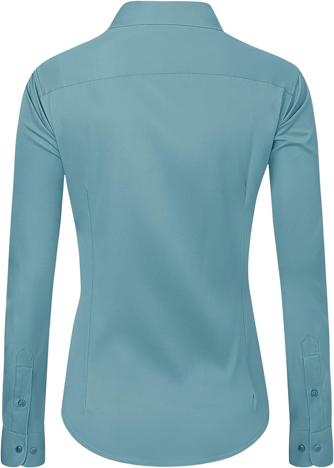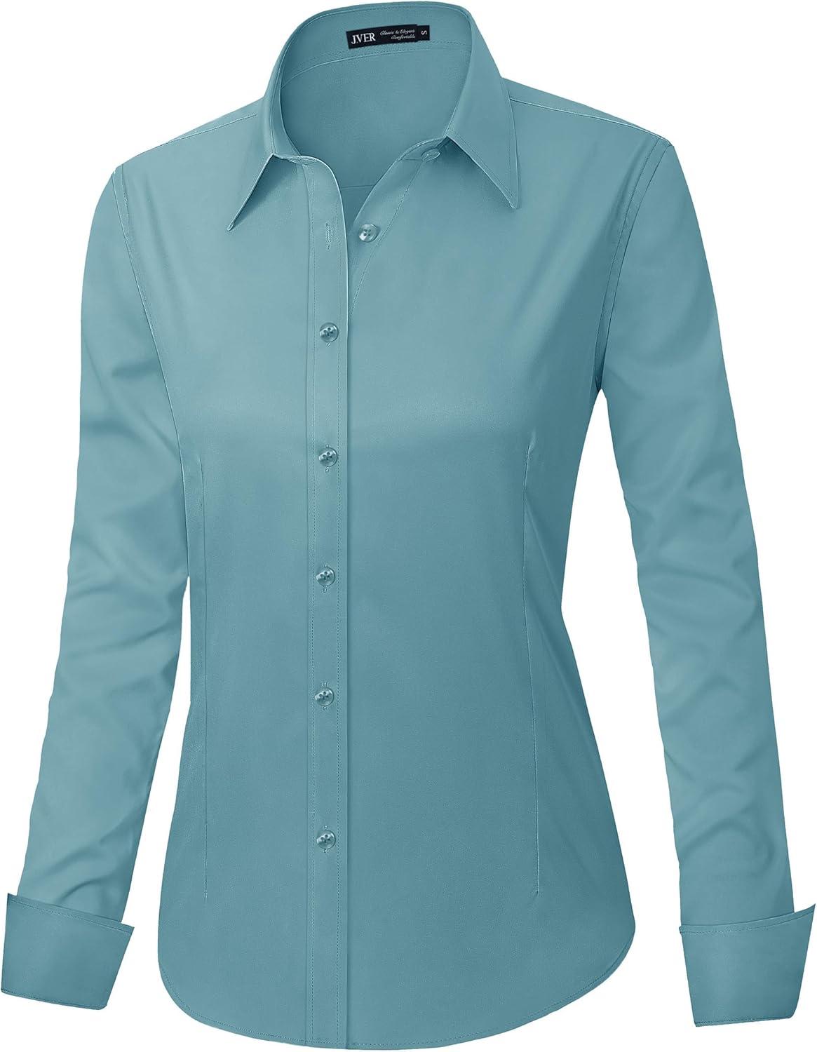 J.VER Womens Dress Shirts Long Sleeve Button Down Shirt Wrinkle-Free Business Casual Blouse Office Work Tops(Aqua Blue)