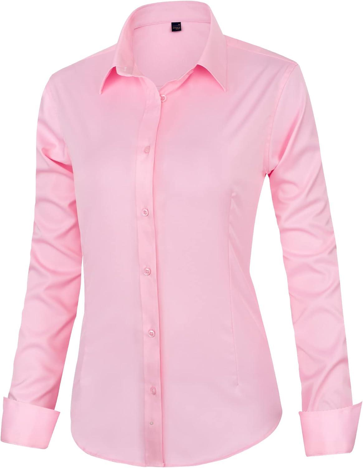 J.VER Womens Dress Shirts Long Sleeve Button Down Shirt Wrinkle-Free Business Casual Blouse Office Work Tops(Pink)