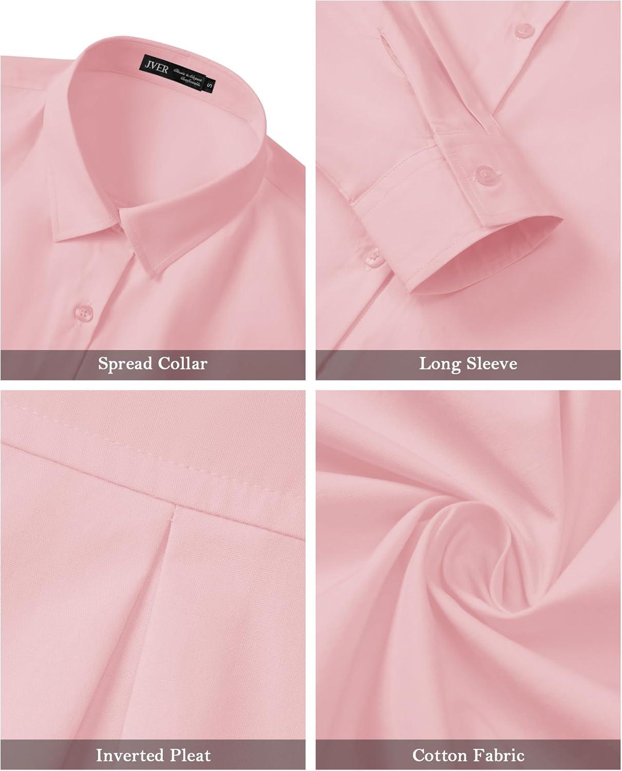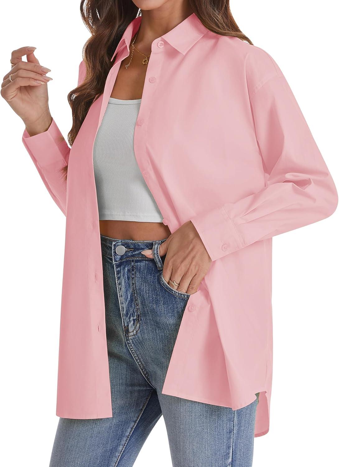 J.VER Womens Oversized Button Down Shirts Casual Long Sleeve Lightweight Breathable Solid Cotton Blouse Office Dress Shirt(Pink)