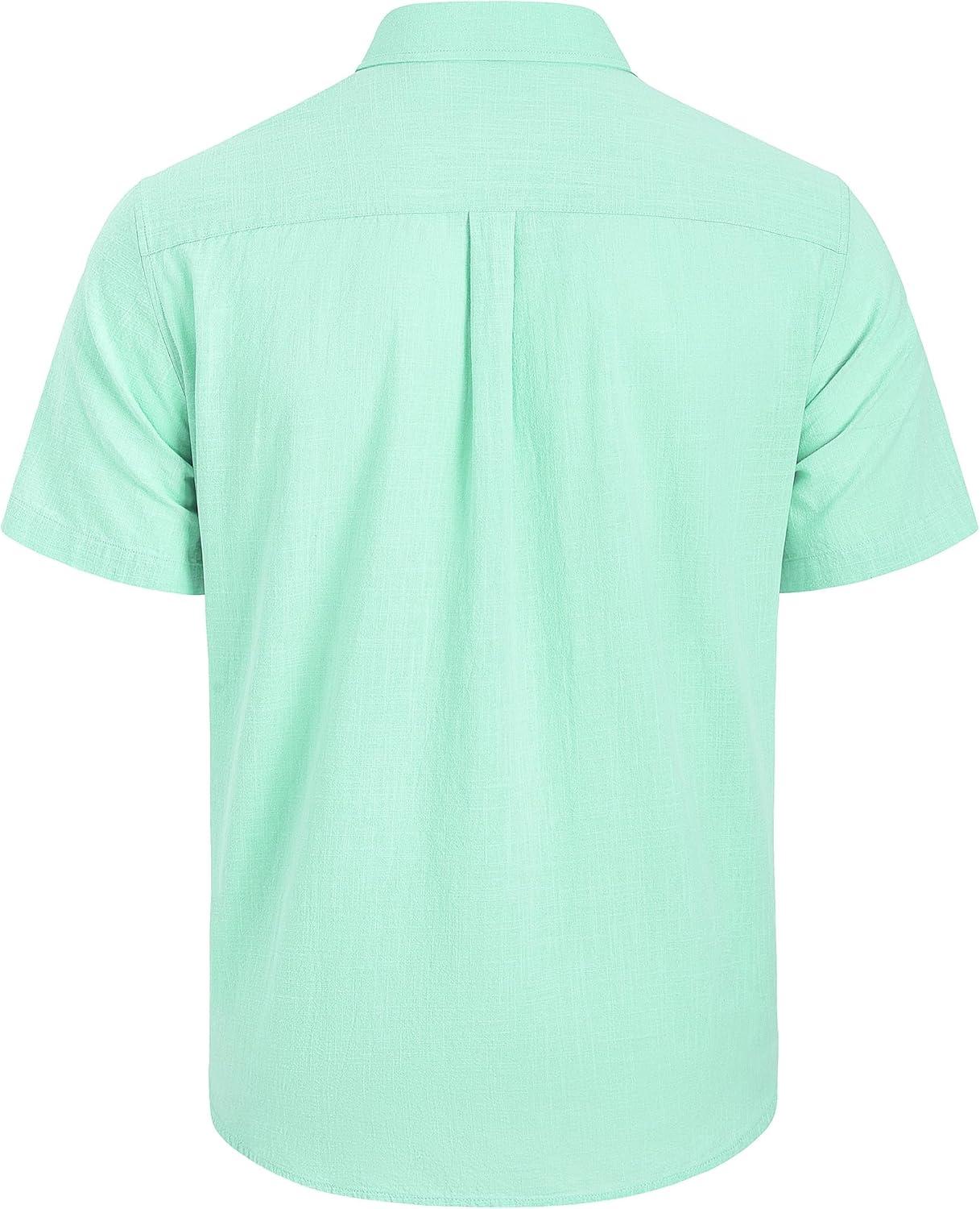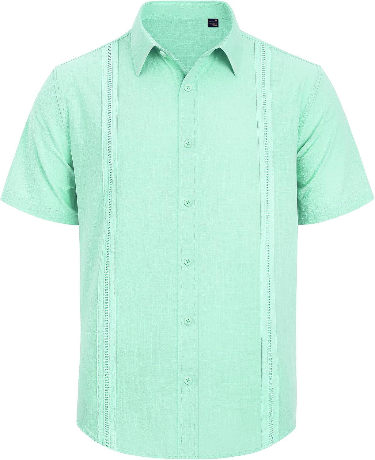 Mens Linen Shirts Short Sleeve Button Down Shirt Casual Cuban Guayabera Lightweight Summer Beach Solid Tops(Mint Green)