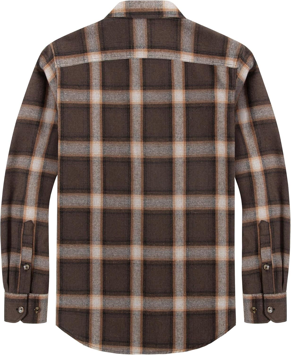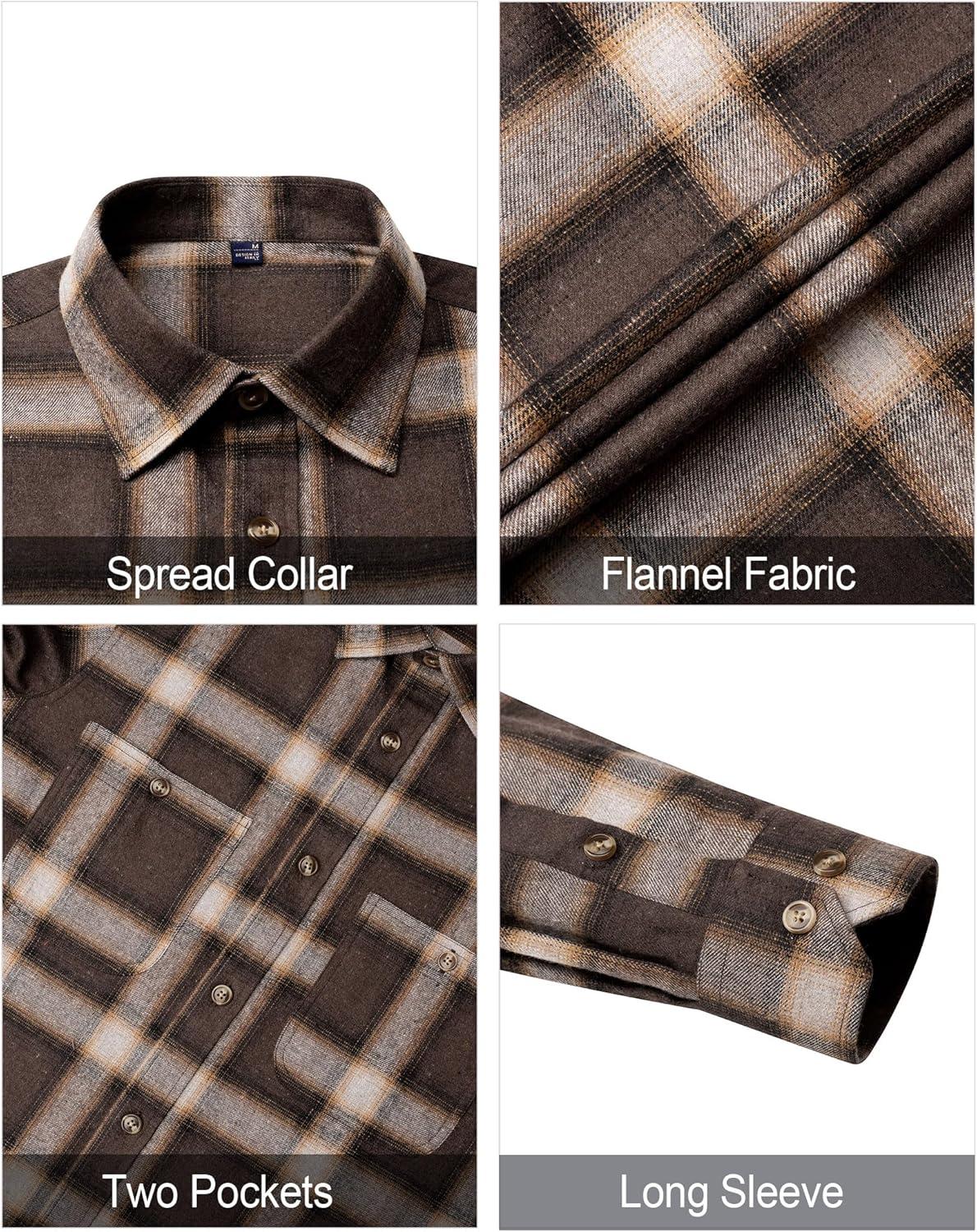 Men's Plaid Flannel Shirt Long Sleeve Casual Button Down Shirts Regular Fit Cotton Office Work Tops with Pockets(Brown)