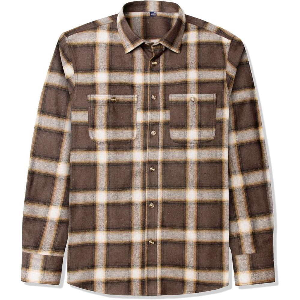 Men’s Plaid Flannel Shirt Long Sleeve Casual Button Down Shirts Regular Fit Cotton Office Work Tops with Pockets(Brown)