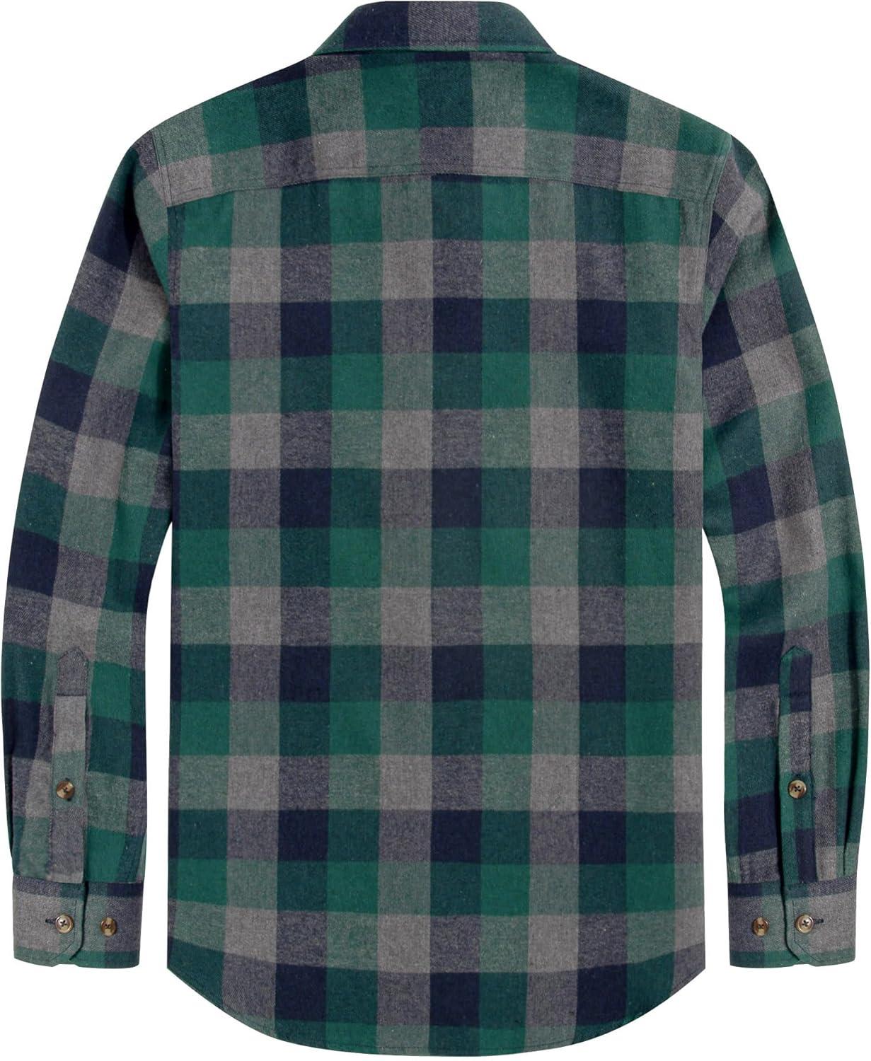 Men's Plaid Flannel Shirt Long Sleeve Casual Button Down Shirts Regular Fit Cotton Office Work Tops with Pockets(Green Navy)