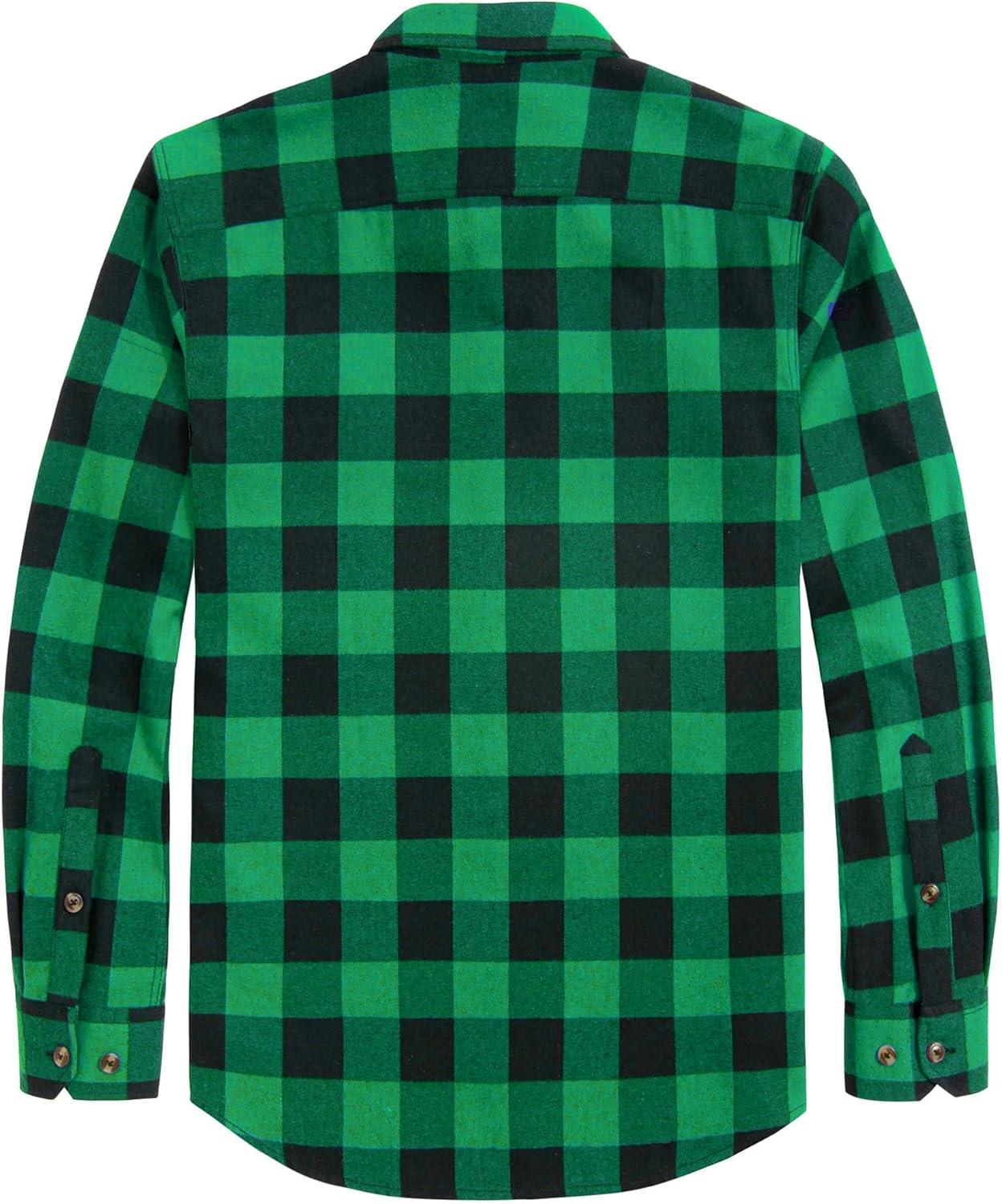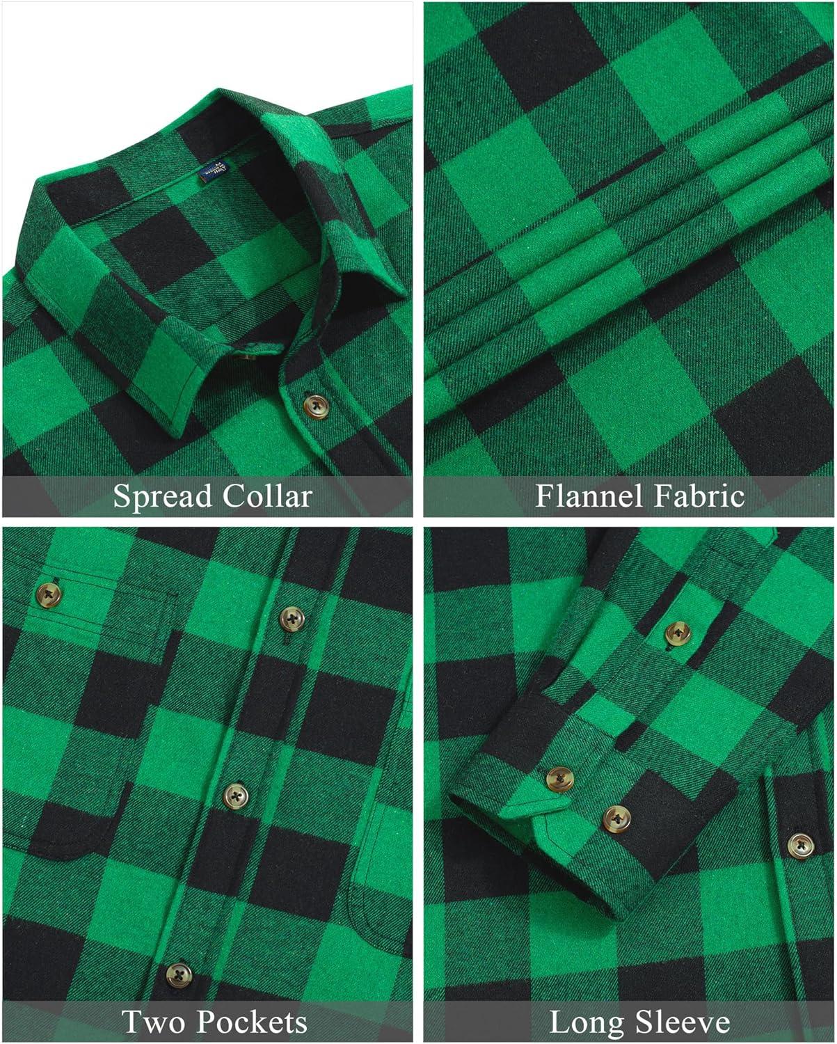 Men’s Plaid Flannel Shirt Long Sleeve Casual Button Down Shirts Regular Fit Cotton Office Work Tops with Pockets(Green)