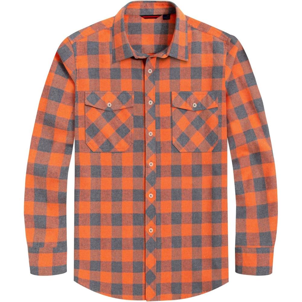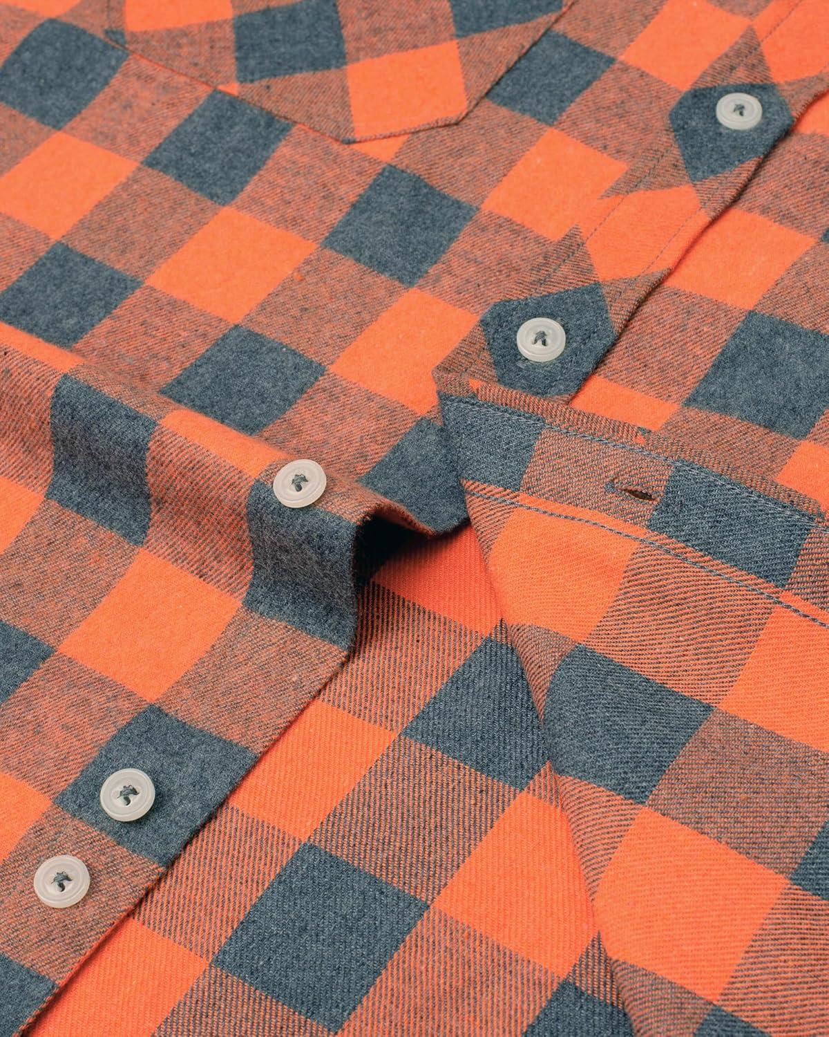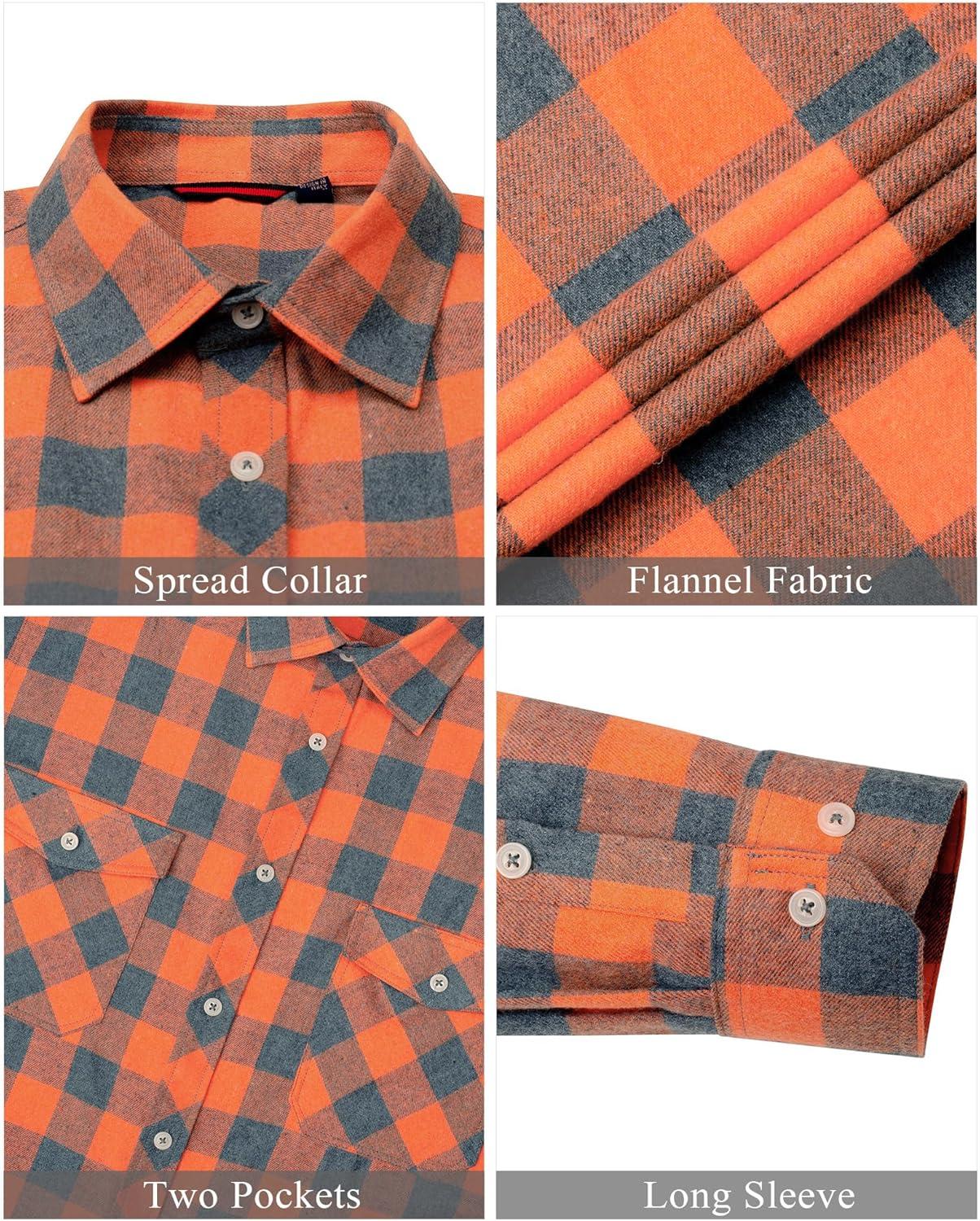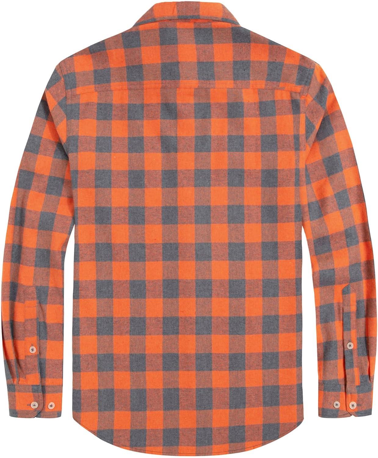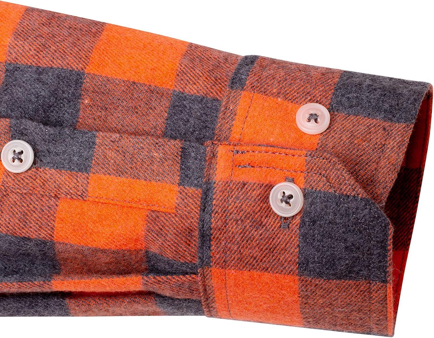 Men’s Plaid Flannel Shirt Long Sleeve Casual Button Down Shirts Regular Fit Cotton Office Work Tops with Pockets(Orange)